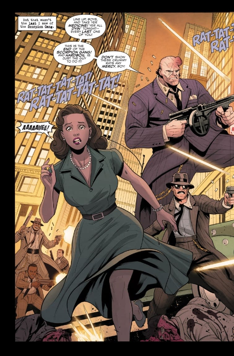 THE COLD CASE GETS HOT! The investigation into the death of George Stacy heats up, and Peter figures out the murderer's identity! Gwen Stacy isn't going to like it! But in the meantime, meet the newest Spider-Man Noir rogue – HARD BOIL!