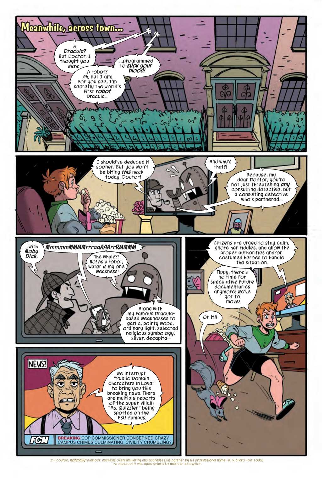 • In the past months, Squirrel Girl has battled Kraven, rescued NYC from supernatural silence, kinda-maybe died and also fought Skrulls! So now it's time for a nice break…which is why in THIS issue, Squirrel Girl does nothing but watch public domain movies on television!