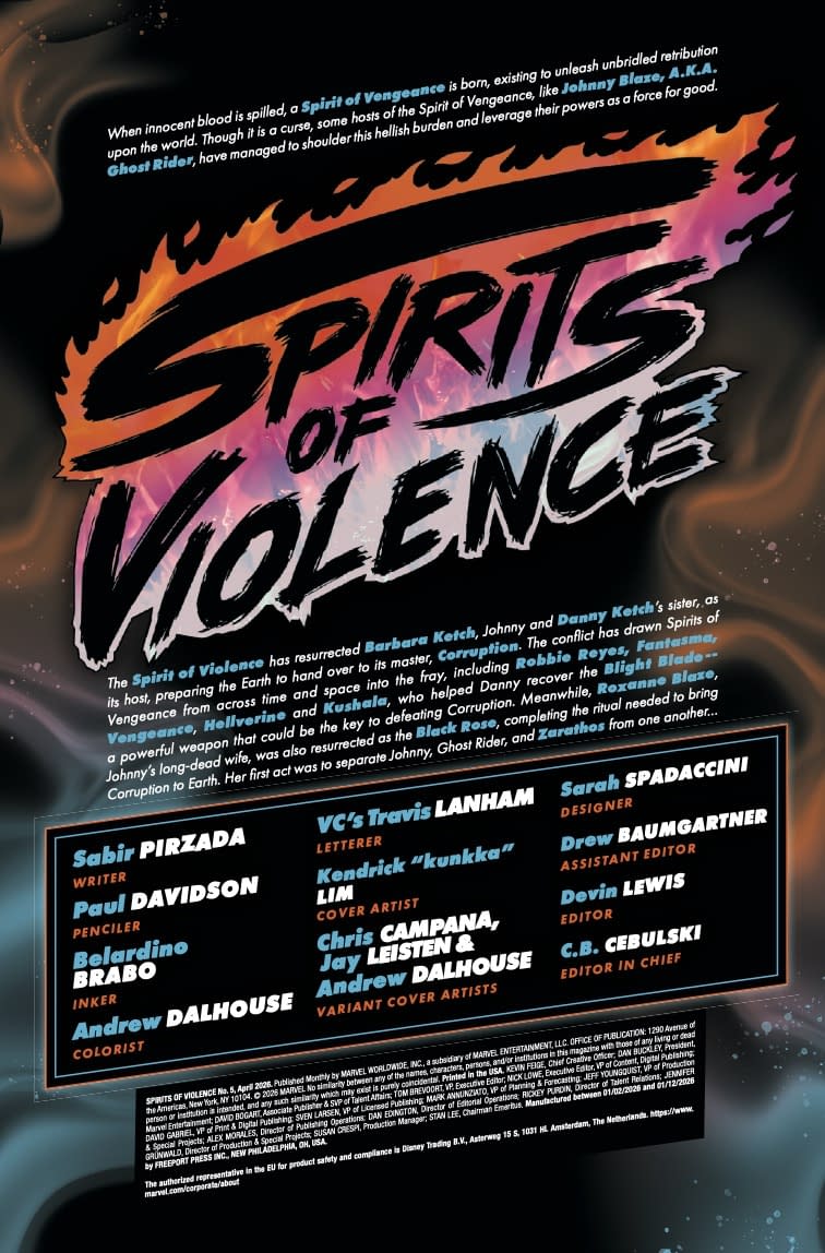 - Cover image for 75960621269900521 SPIRITS OF VIOLENCE #5 CHRIS CAMPANA VARIANT, by Sabir Pirzada & Paul Davidson, in stores Wednesday, February 4, 2026 from Marvel