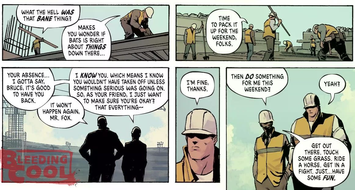 But as for those first appearances, well, Absolute Batman #16 brings us the first confirmation of an Absolute Lucius Fox, Bruce Wayne's boss on the worksite, a reversal of the usual situation where Bruce Wayne is his boss. And Lucius makes for a very forgiving boss, but to be fair, it's hard to find someone quite as large as Bruce Wayne…