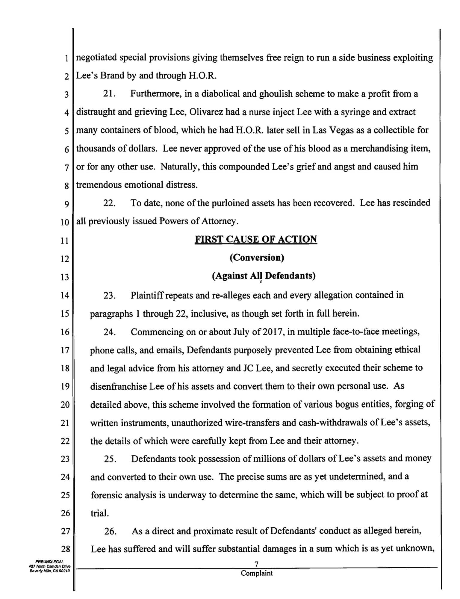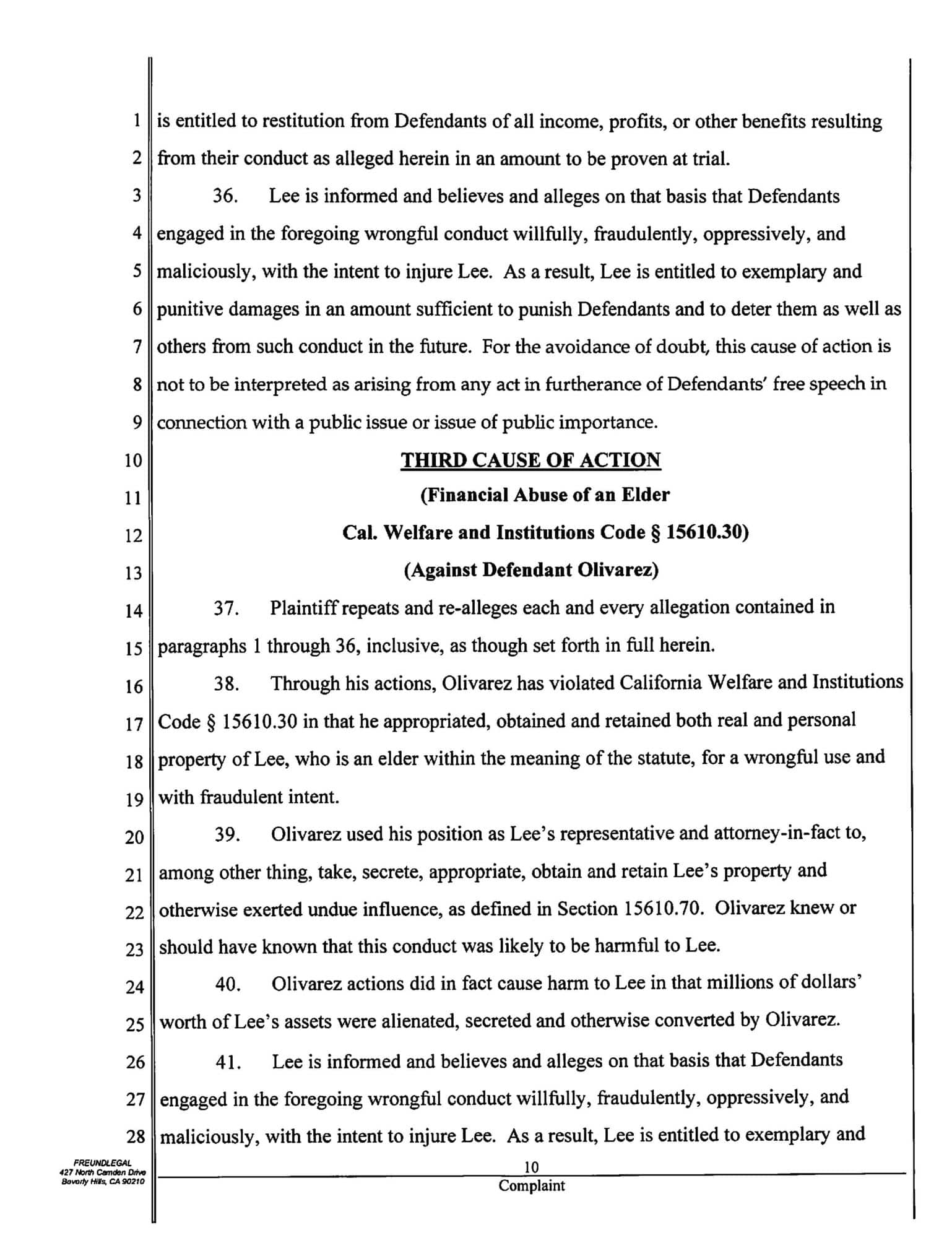 But yesterday Lee began suing over charges of elder abuse against him, specifically Jerry Olivarez, one of the people named in the Hollywood Reporter article. His suit says more widely: