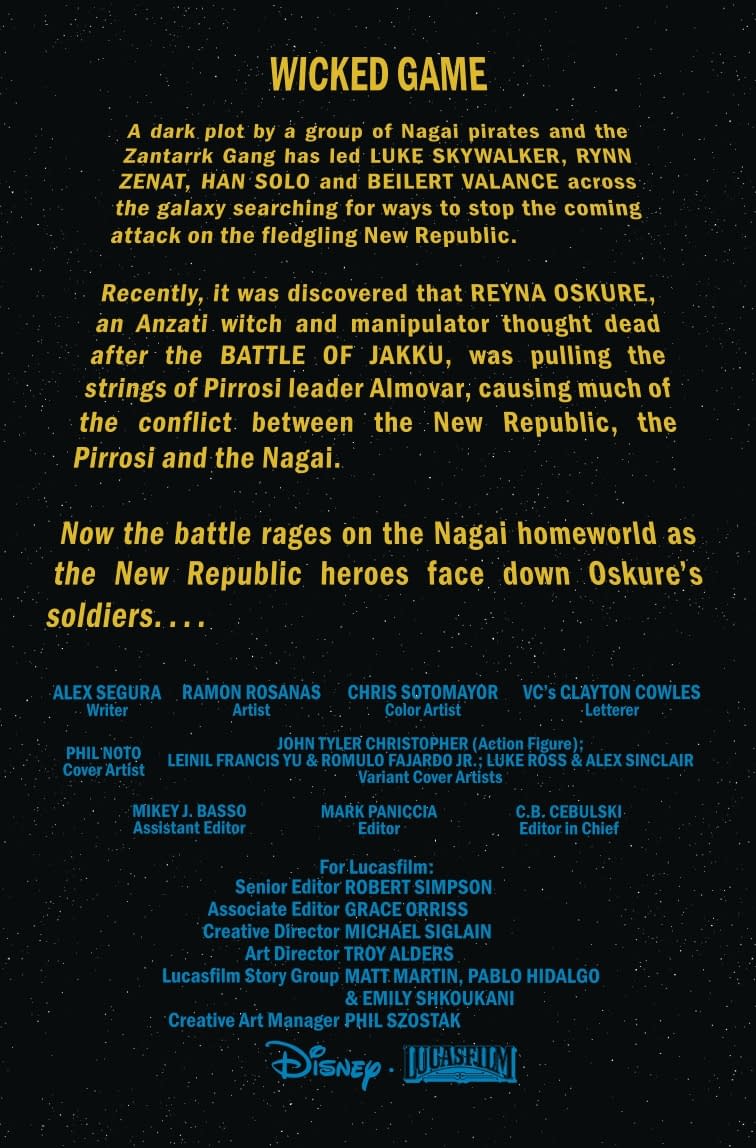 THE END FOR THE NEW REPUBLIC?! LUKE, LEIA, HAN and VALANCE struggle to reunite and help their Nagai allies fight for freedom! A shocking death as a hero falls at the hands of the ZANTARRK STORMTROOPERS! A villain's desperate, final gamble puts everything the NEW REPUBLIC stands for in peril! Can an ancient JEDI RELIC rescue our heroes from certain death – or doom them?