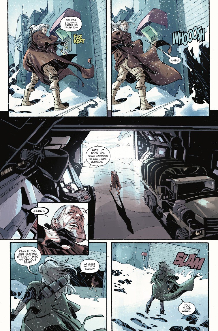 • And finally, CLINT BARTON comes face-to-face with his ultimate target: BARON ZEMO, who masterminded the murder of the AVENGERS 45 years before!