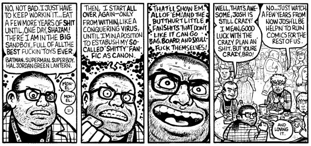 Evan Dorkin wrote about this phenomenon in the recent Eltingville collection and conclusion with Josh's final destiny. But it seems a given that anyone who does make the jump, will put away actually creating such fanfics as they have the real thing to work on.