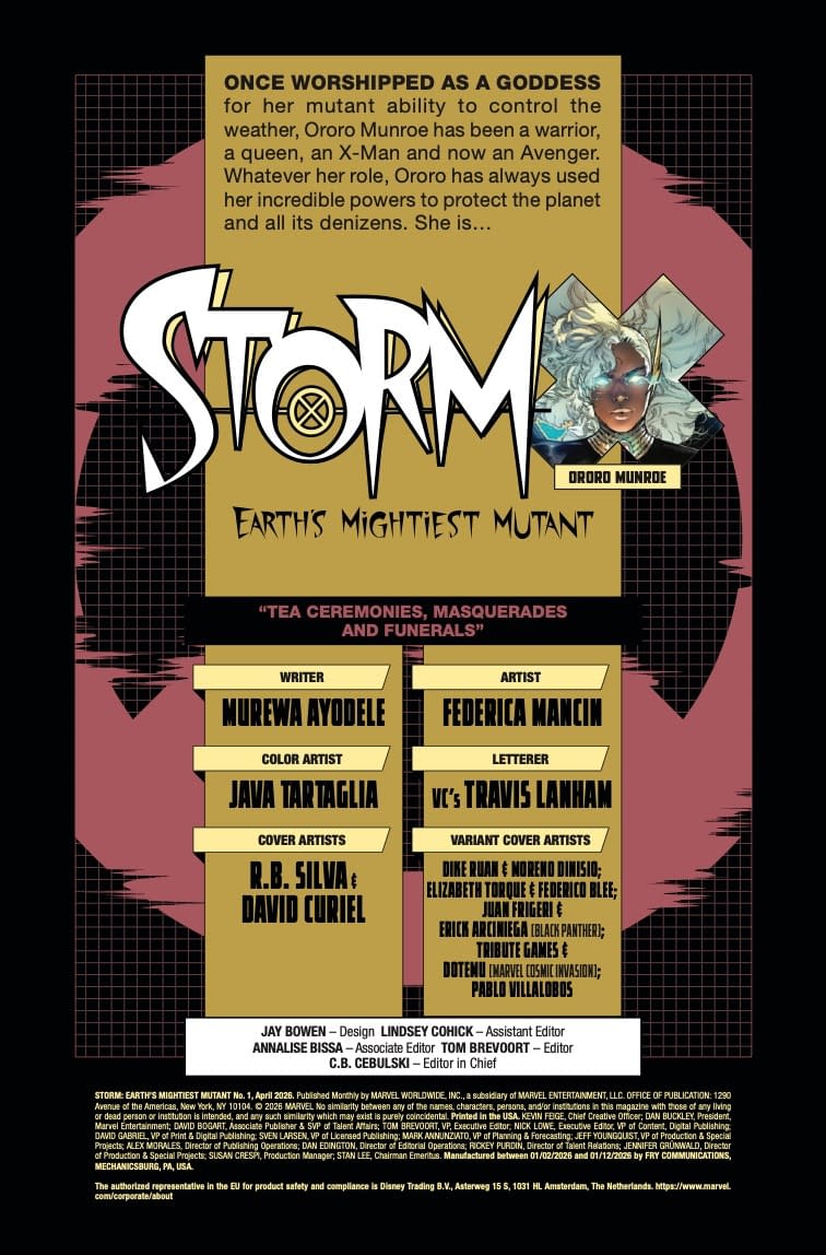- Marvel unleashes a bold new chapter for Storm, crafted by Murewa Ayodele and Federica Mancin, rated T+.