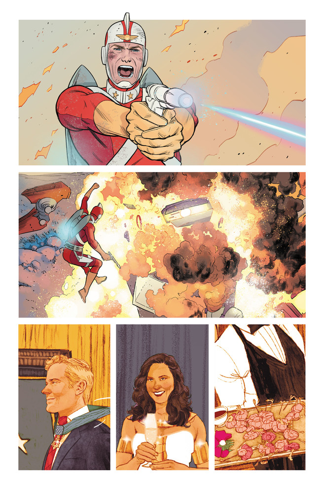 The Eisner Award-winning team behind DC's Mister Miracle and The Sheriff of Babylon, writer Tom King and artist Mitch Gerads, is joined by fan-favorite artist Evan "Doc" Shaner (Justice League: Darkseid War: Green Lantern) to bring you Strange Adventures, an epic tale in the tradition of Watchmen, The Dark Knight Returns, and DC: The New Frontier—a story of blood, war, and love that readers will talk about for years to come.