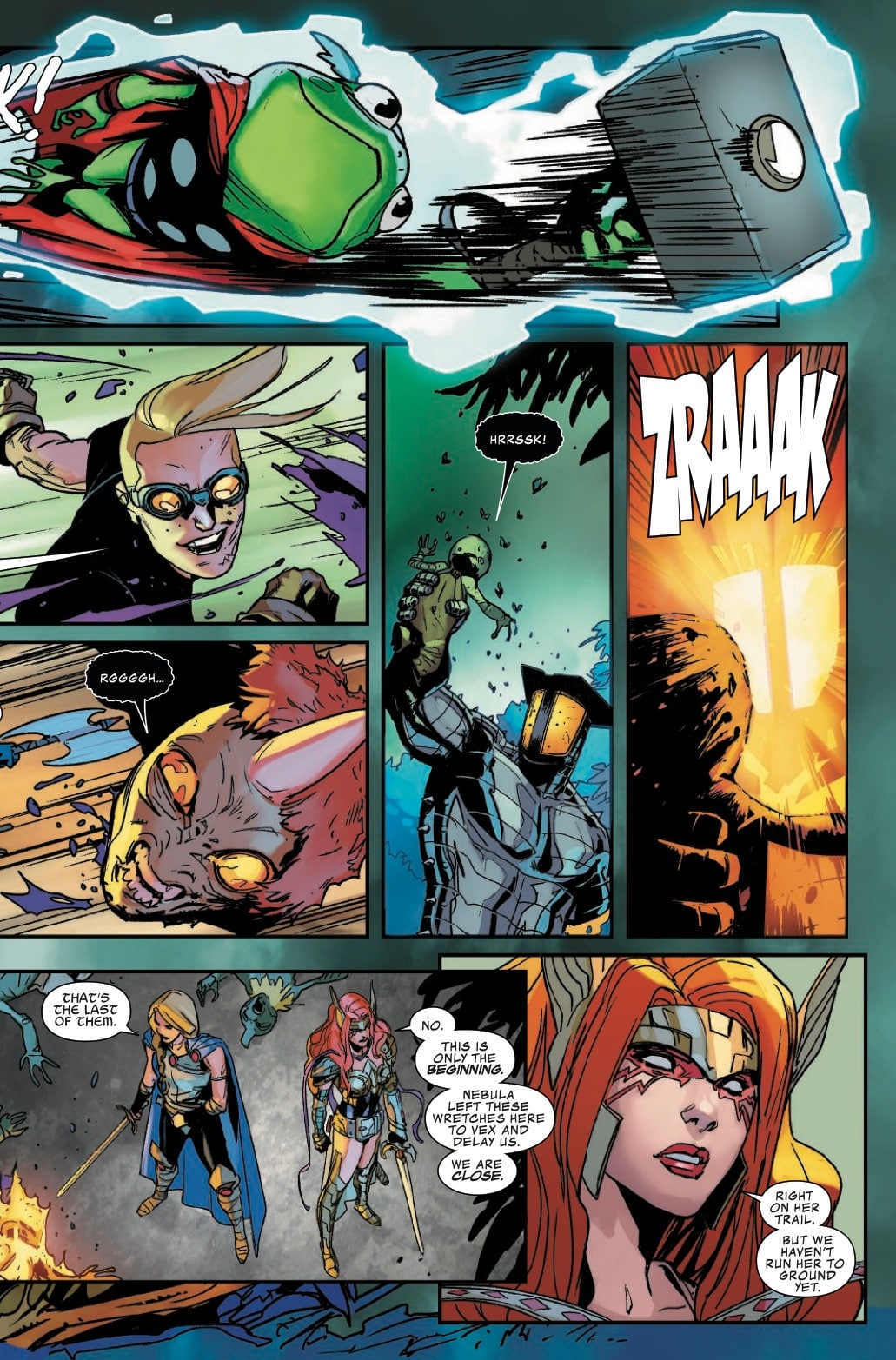 The Asgardians of the Galaxy are hot on the trail of Nebula, trying to prevent the latest universe-threatening apocalypse, but they've run into a snag. Throg — that's the frog version of Thor, for those keeping track — has been swallowed by one of the Naglfar, a group of dead gods from past Ragnaroks that Nebula has raised from the dead using a magical horn. Wait, is this Thor, or the final season of Game of Thrones?