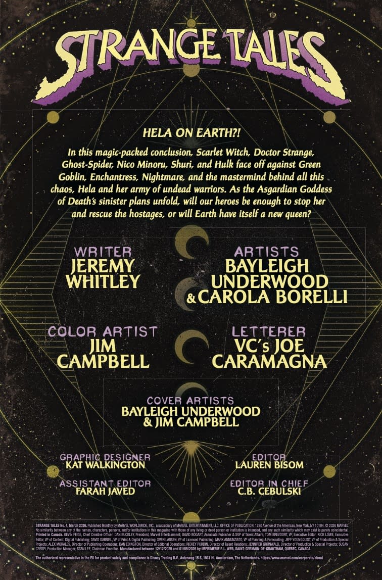 - Cover image for 75960621312200411 STRANGE TALES #4 BAYLEIGH UNDERWOOD COVER, by Jeremy Whitley & Marty Forbeck & Bayleigh Underwood & Bayleigh Underwood, in stores Wednesday, January 28, 2026 from Marvel