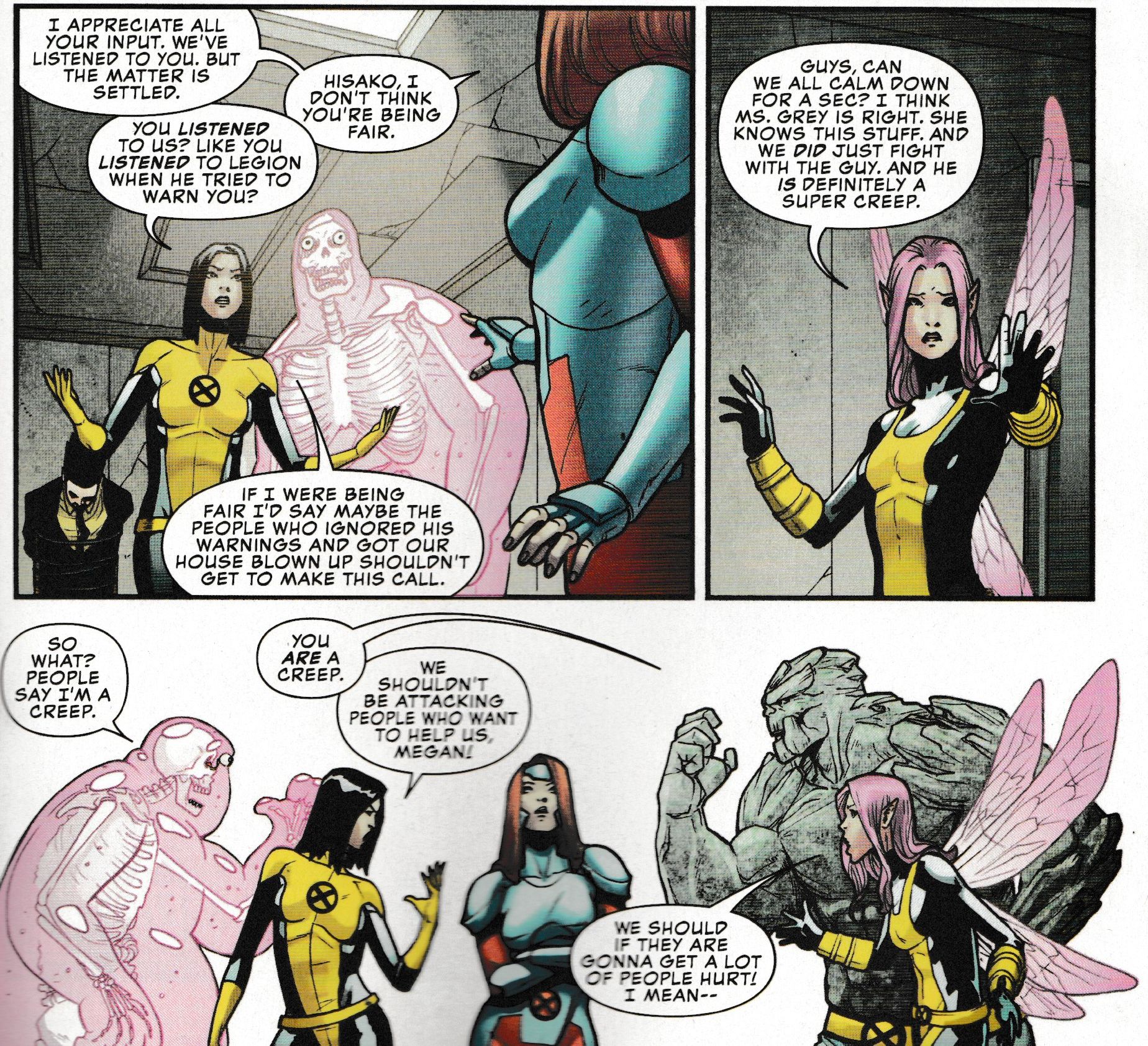 But these new students want more than to just follow a Professor. And so, when the older X-Men deal with Legion in the way they have always done, following the patriarchal line set by Professor Xavier, knowing Legion will probably destroy everything and made a damn good stab at it last week, the kids have a different view. And because they are an entitled, agencied and bolshy generation, make this very clear in today's Uncanny X-Men #4. Go, Hisako…