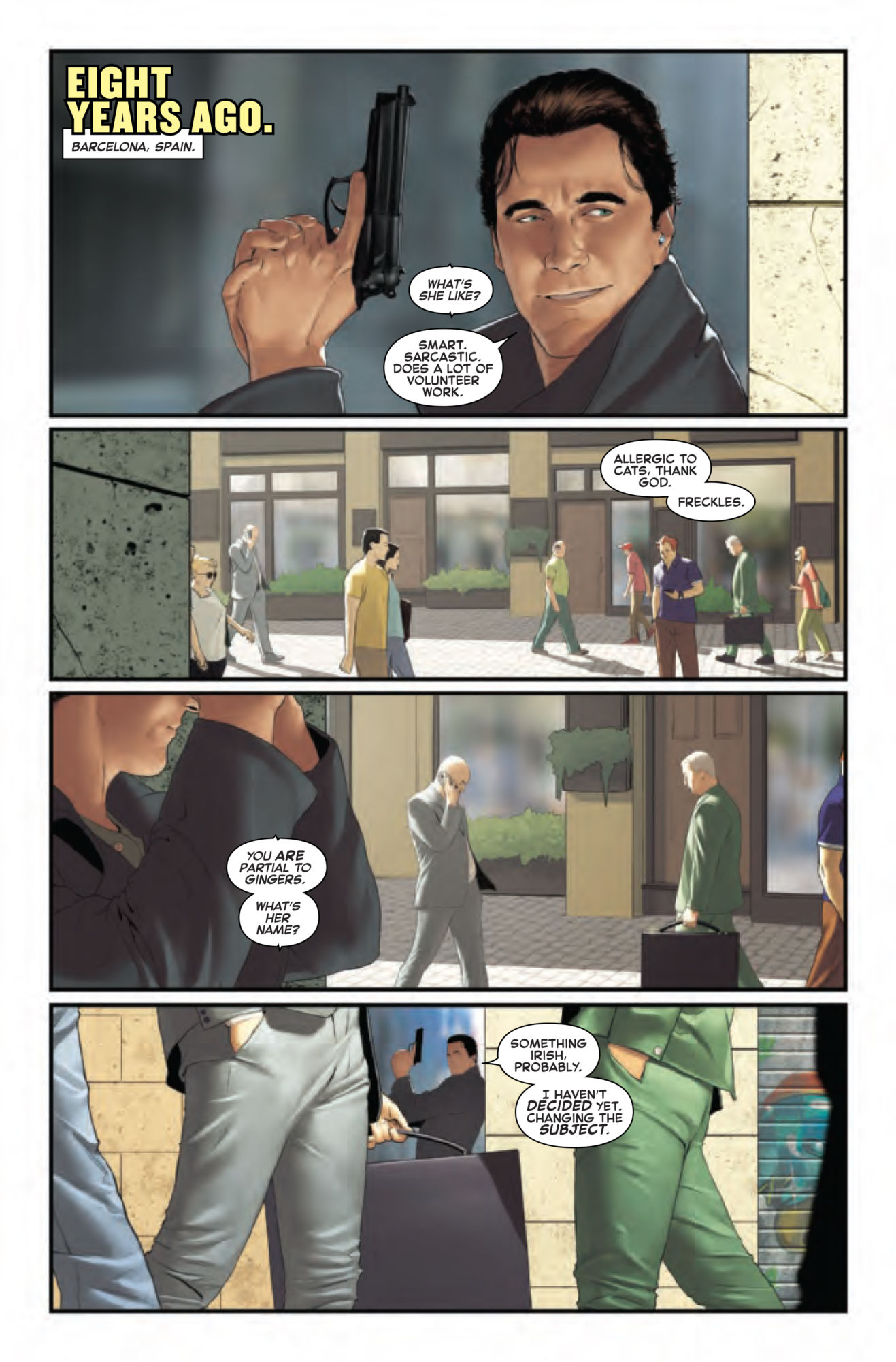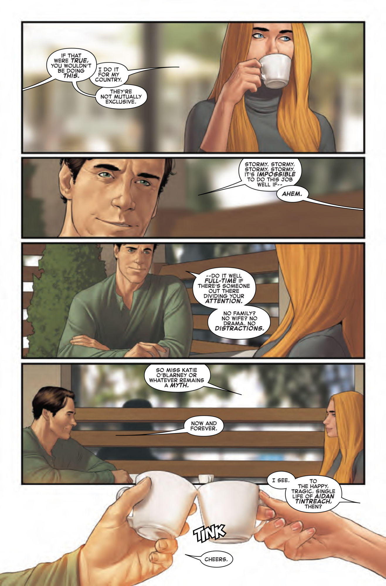 The Invisible Woman is well-known for being part of Marvel's first family, but did you know she's also a part-time super-spy? That's the subject of her new solo book, but in this preview of Invisible Woman #2, we find it's hard to get respect for your espionage abilities when you're well-known for being a family woman. As we see, in the past, Sue chatting with a colleague, Agent Aidan Tintreach…
