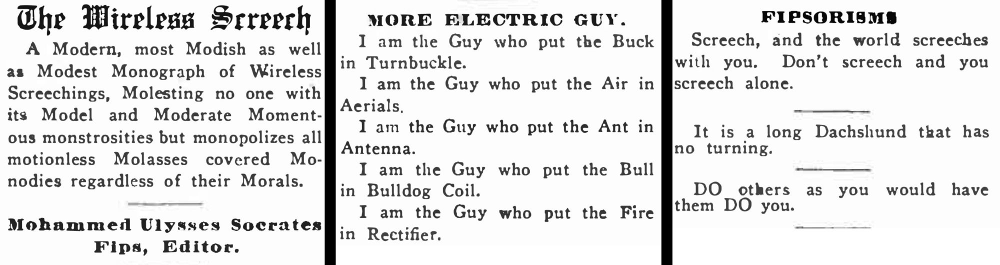 Fips was used as comic relief in scientific publications which were filled with diagrams, equations, and step by step unstructions. He was assigned duties that ranged from 'office boy' to editor, and often discussed his Indian heritage Given the similarity of "Fips" to "Hip", it may also be that the 'third eye' on Hip Knox's chest has its origin in Hindu and Buddhist third eye symbolism, because of the character of Mohammed Ulysses Socrates Fips that Gernsback had developed over the years.