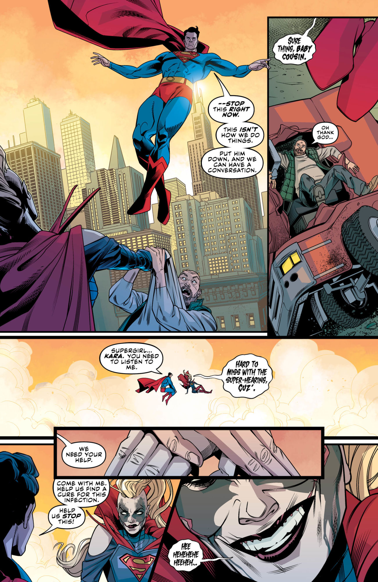 Infected Supergirl strikes! After Supergirl protects Superman from getting infected by the Batman Who Laughs virus, she gets infected herself…and accepts this new version of herself with pride! With Batman and Superman claiming to want to "cure" her to cover up that she had to protect Superman, and the Batman Who Laughs wanting to use her in his own plans, which side will Supergirl choose? Or will she forge a whole new alliance?