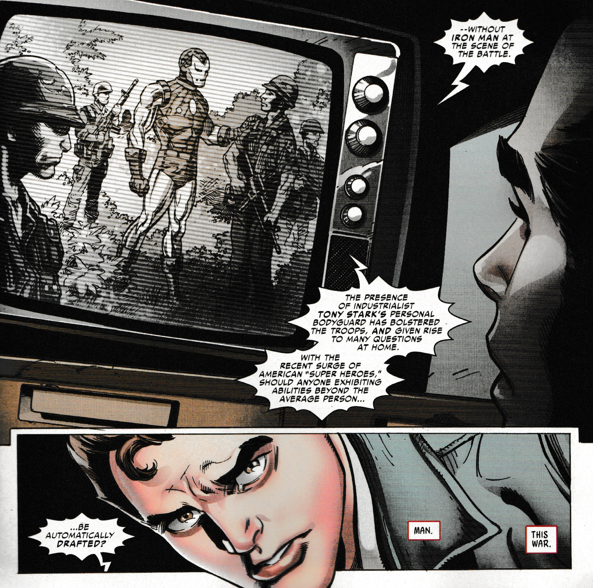 Notes of Civil War emerge with the idea that all superheroes should be drafted for Vietnam.