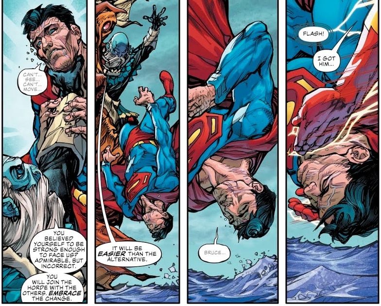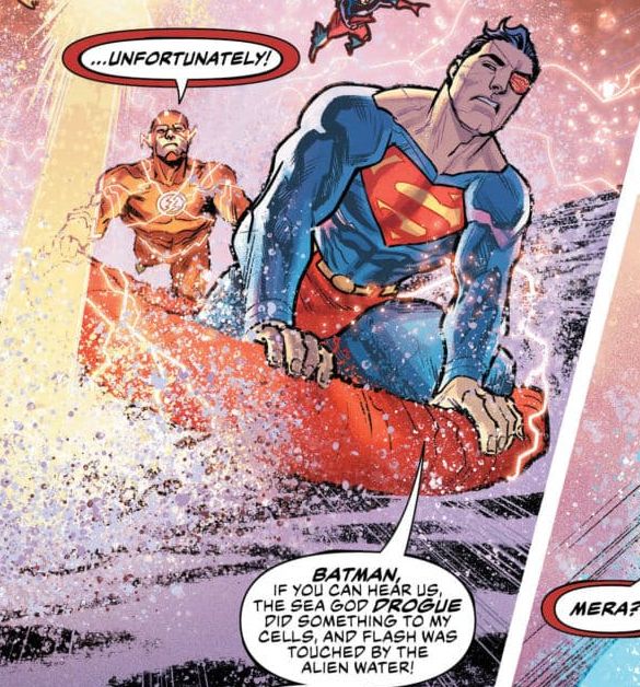In the recent Justice League/Aquaman Drowned Earth Special, Superman came a cropper at the hand of one of the Ocean God invading Earth.