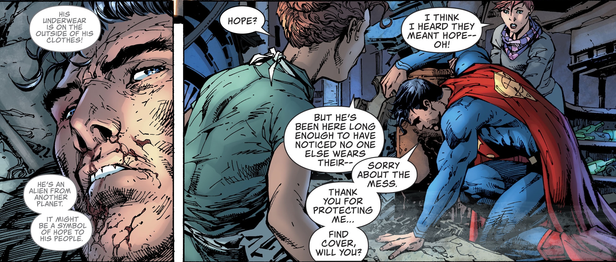 That's right, folks, Superman's red trunks are a symbol of hope. Let's make sure that stays canon…