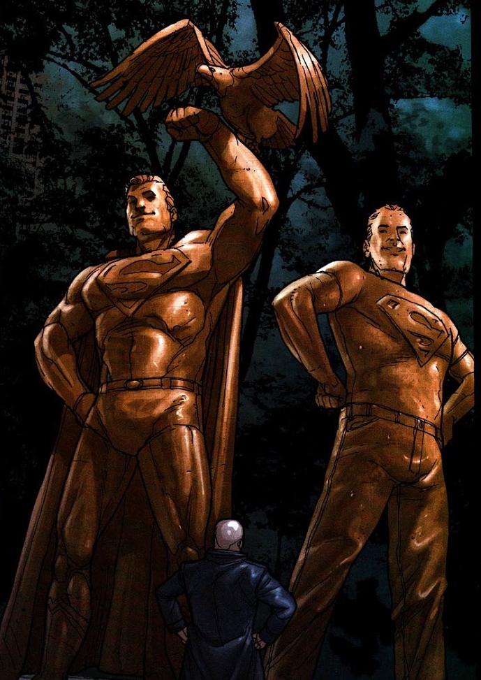 The DC New 52 version of the Centennial Park Superman Statue below switched it from being a celebration of Superman saving the city from an asteroid, to a monument to his death at the hands of Doomsday. And also someone carved off the trunks.