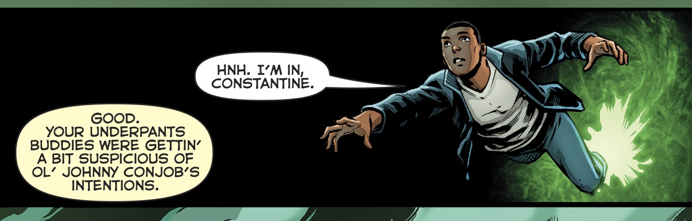 And there is also commentary across the DC Universe today. John Constantine pops up in Green La nterns looking for a Super-light….
