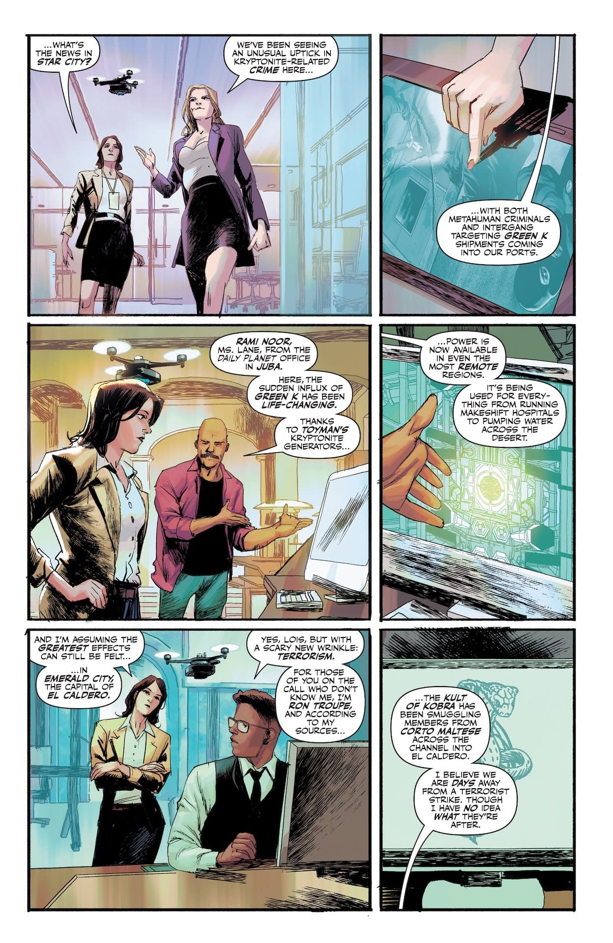 - El Caldero, flooded with Kryptonite, faces a Kobra Kult attack, forcing Superman into a hazardous rescue.