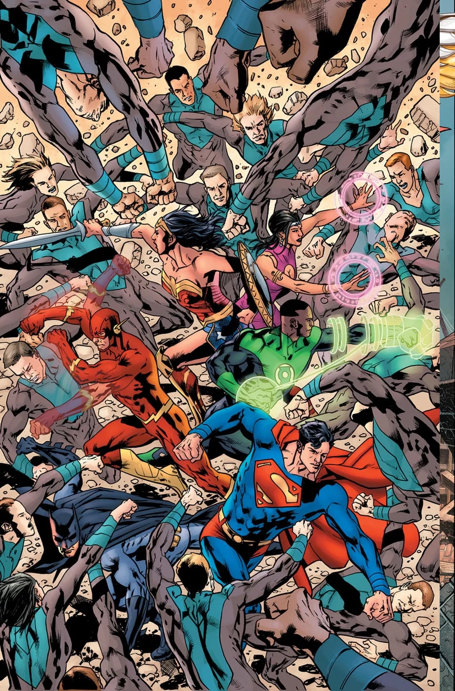 Invasion of the Supermen! Eradicator and his strike team sweep across Earth with devastating consequences. The Justice League finds itself battered and overwhelmed by an enemy more powerful than even Superman. Batman and Green Lantern plan a counter assault, but it can't work without the Flash, whose connection to the Speed Force has become unpredictable—and possibly fatal. With the team at half-strength, will it be enough to hold their enemies at bay?