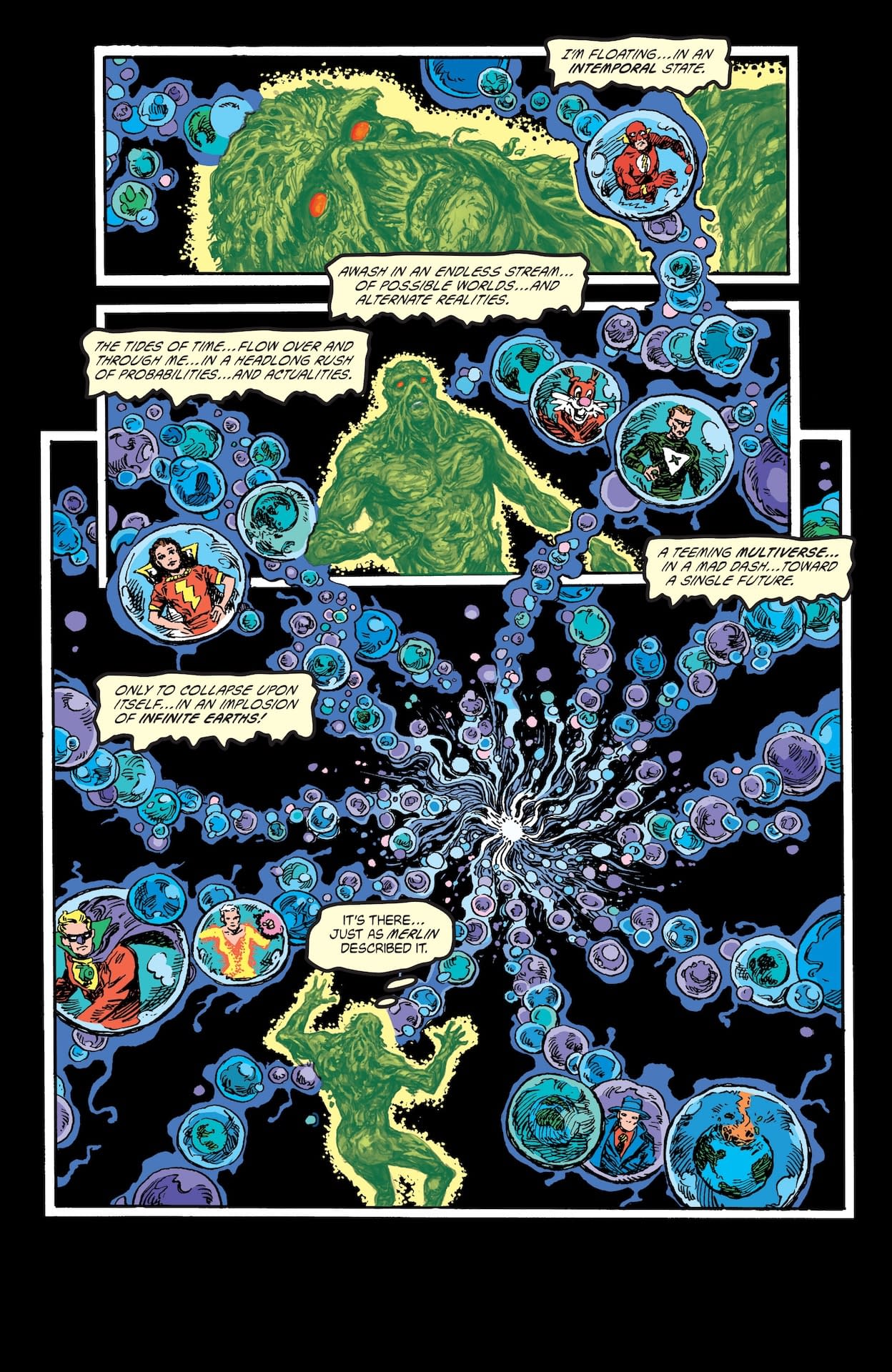 - Swamp Thing is cast back through time, meeting a carpenter who reshapes the DC Universe and kicks off Etrigan's origin.