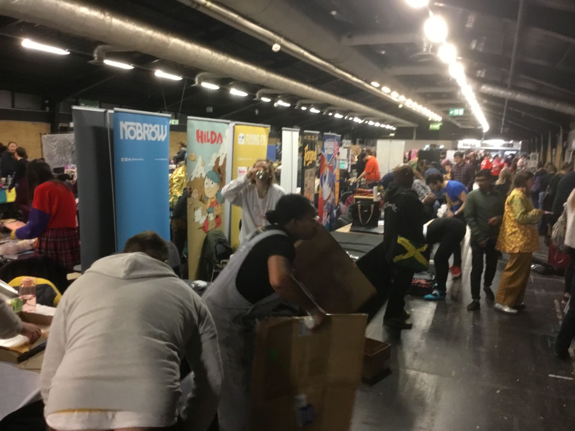 Last weekend saw the first Thought Bubble comic convention in Harrogate, moving half an hour on the train from Leeds, but it seemed a world away. From all accounts however, it was a success. Some vendors I spoke to reported double their sales at the previous Thought Bubble, others triple. even if there was a slowing down on the Sunday. Though it no longer enjoyed the passing traffic from being visible in the heart of a busy city like Leeds, after a decade-plus, it had the reputation that drew Leeds regulars – as well as being far more accessible from other cities such as York and Manchester – and a marketing plan to match that.