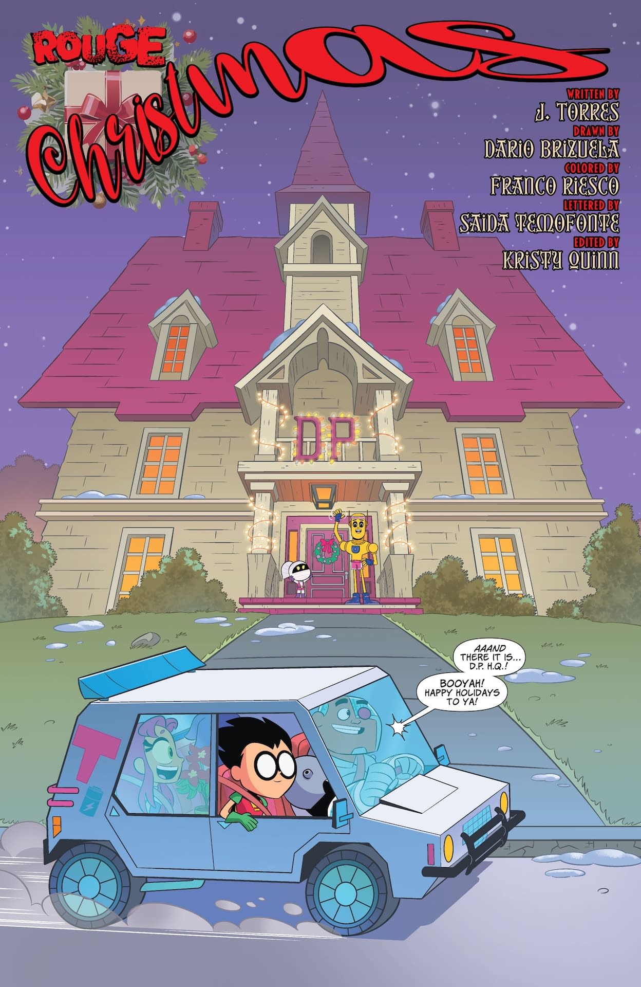 THE HOLIDAYS ARE FULL OF HIJINKS! Instead of a white Christmas, or even a blue Christmas, it's a Rouge Christmas for the Teen Titans! As in Madame Rouge, the shape-shifting villain who wants to make it an unhappy holiday for Beast Boy and his adoptive family, the Doom Patrol.