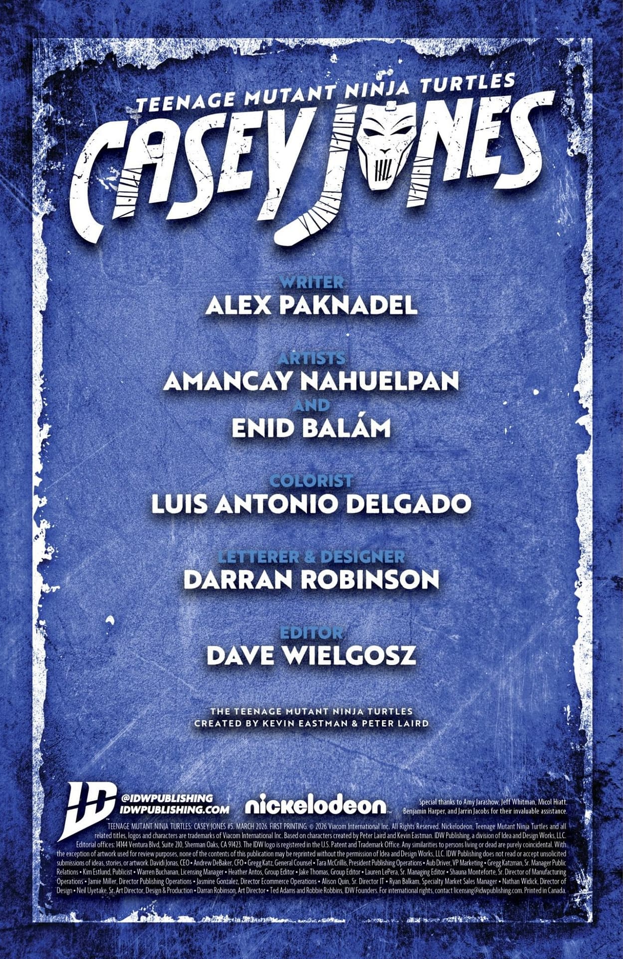 - Cover image for 82771403463900511 TEENAGE MUTANT NINJA TURTLES: CASEY JONES #5 AMANCAY NAHUELPAN COVER, by Alex Paknadel & Amancay Nahuelpan & Amancay Nahuelpan, in stores Wednesday, March 4, 2026 from IDW Publishing
