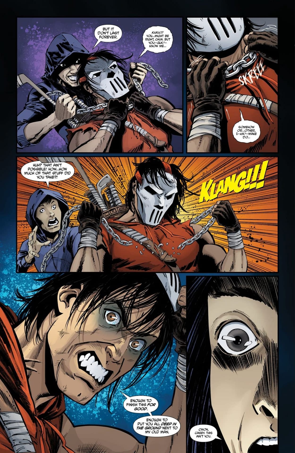 Casey Jones faces his past with the Purple Dragons before his final showdown with Ludovic in Teenage Mutant Ninja Turtles: Casey Jones #5.