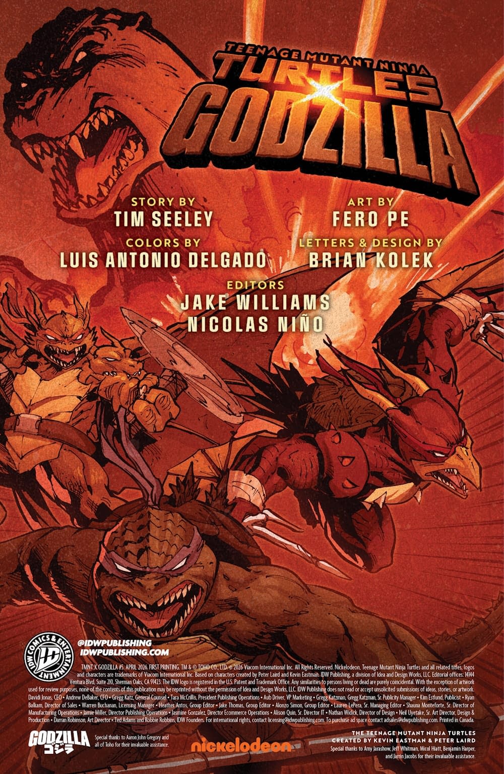 - Cover image for 82771403482000521 Teenage Mutant Ninja Turtles x Godzilla #5 Variant B (Ba), by Tim Seeley & Fero Pe, in stores Wednesday, April 1, 2026 from IDW Publishing