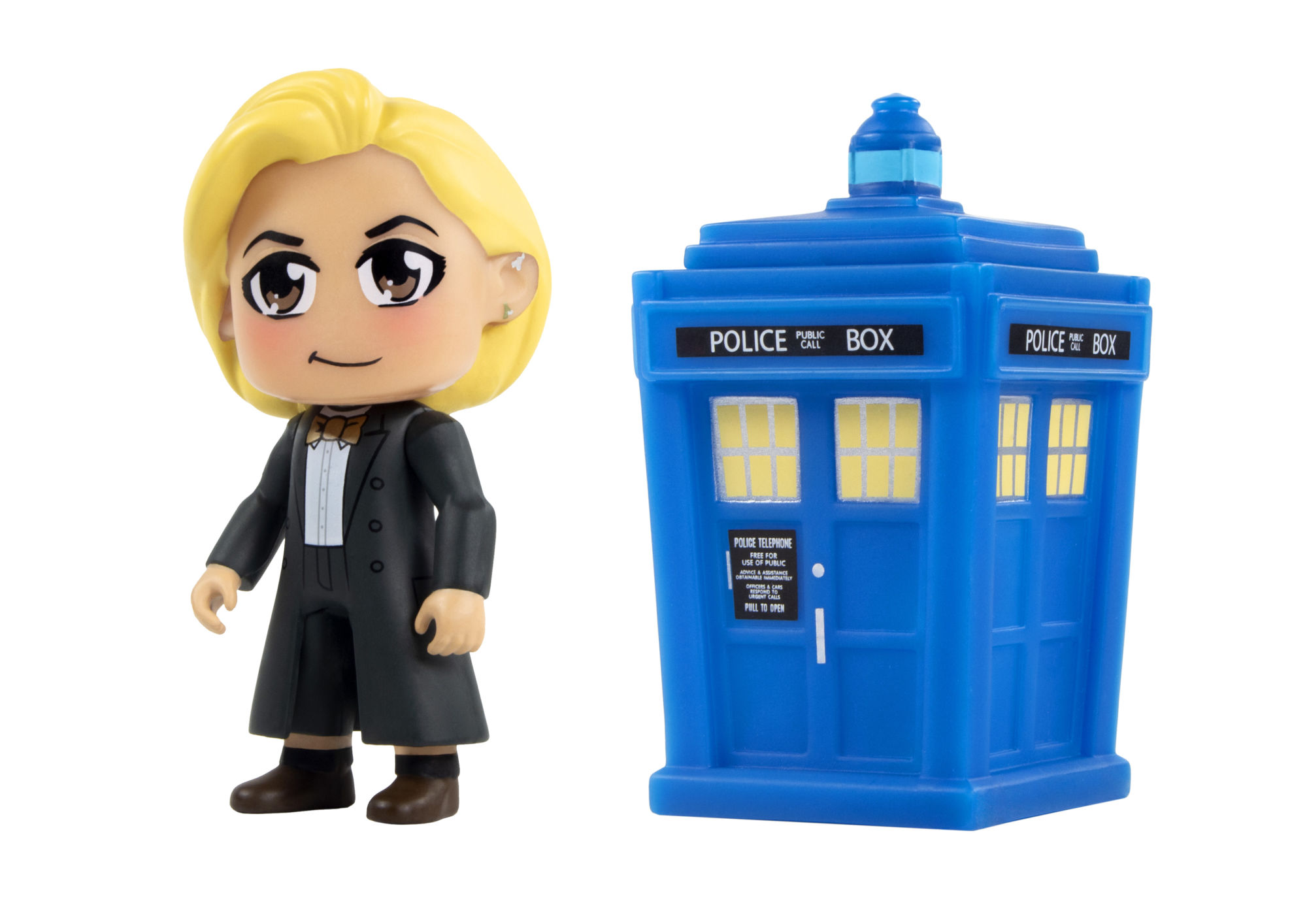 3" KAWAII TUXEDO THIRTEENTH DOCTOR + 3" BLUE GLOW-IN-DARK TARDIS