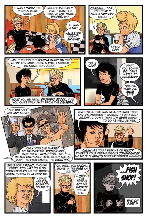 One of the most prominent of the British nineties self-publishers, his work as half of Gratuitous Bunny Comix saw him co-create and draw comic book series More Tales From Sleaze Castle, Petra Etcetera and write and draw Surreal School Stories and Verityfair over thirty-five years. Influenced by everyone from Spike Milligan to Douglas Adams to Victoria Wood to Raymond Briggs to Ken Reid to Dave Sim to Posy Simmonds to the Hernandez Brothers, he told small human stories of strengths and weaknesses, threaded with popular culture, and reflecting into intergalactic tales of wonder, and finding ways to use the comic book form to its fullest.
