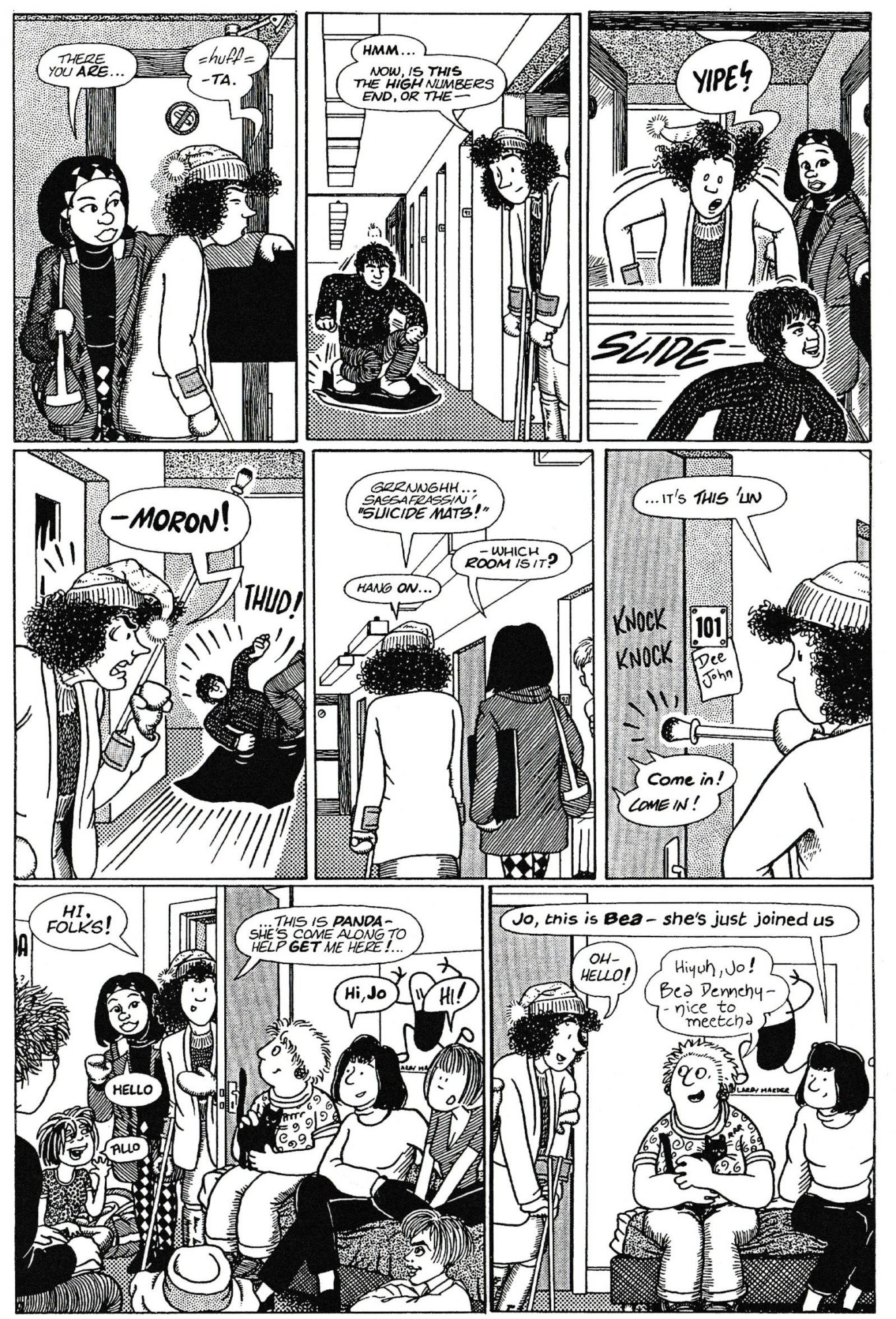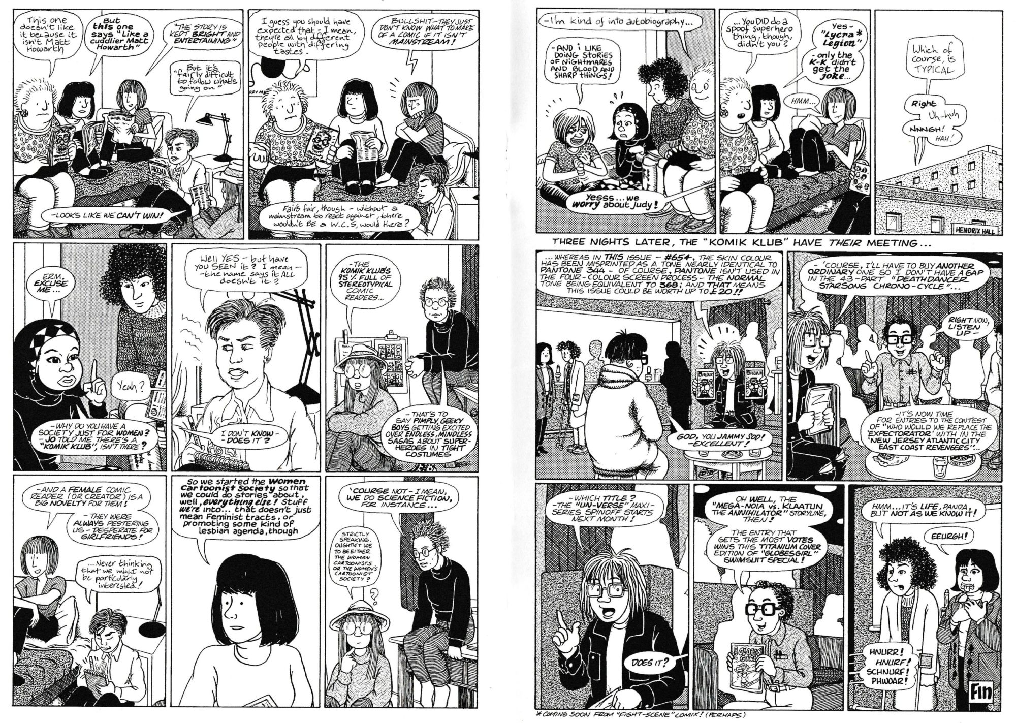 But when going through my collection of Terry Wiley's collection, I found this Sleaze Castle mini-comic, Good Morning Vietgrove by Terry and his writing partner Dave McKinnon. Vietgrove was a Newcastle punk bank who used to daub their logos on the pavements, naming the story. But we also got a spinoff from a previous storyline from the Tales From Sleaze Castle comic book, with main character Jocasta Dribble joining a Women's Cartoonist Society. Made up of a number of members based of actual prominent women cartoonists, including Julie Doucet, Carol Lay, Lee Kennedy, Jeremy Dennis and Posy Simmonds.