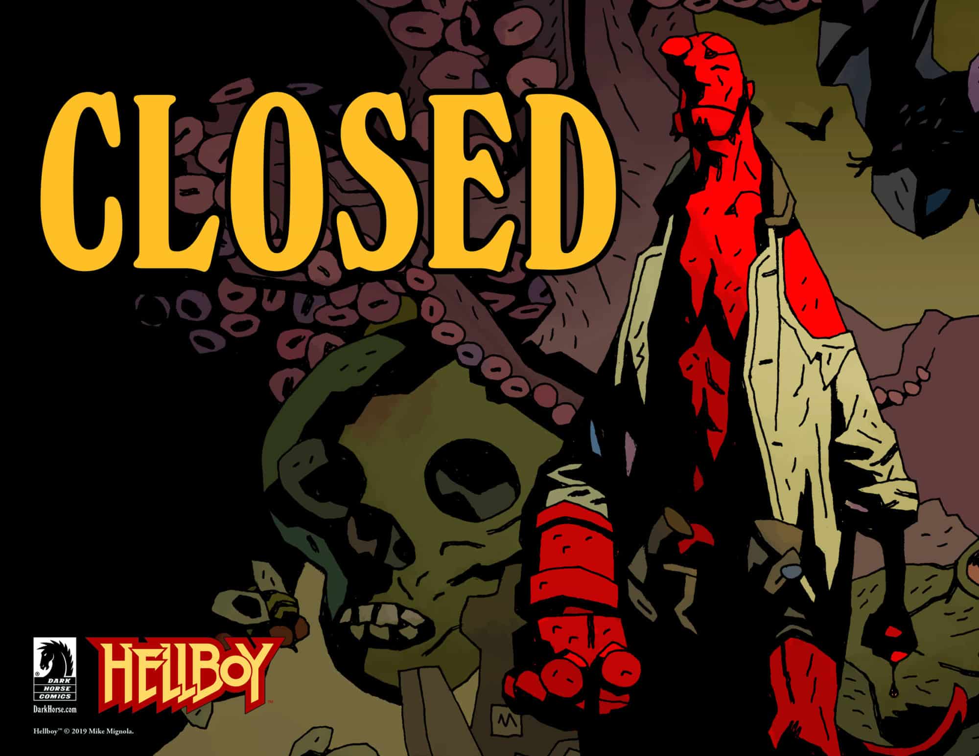 This is Hellboy Day FOC – with all the stuff that brings. Posters, bookmarks, tattoos, open/close signs, window clings and the like.
