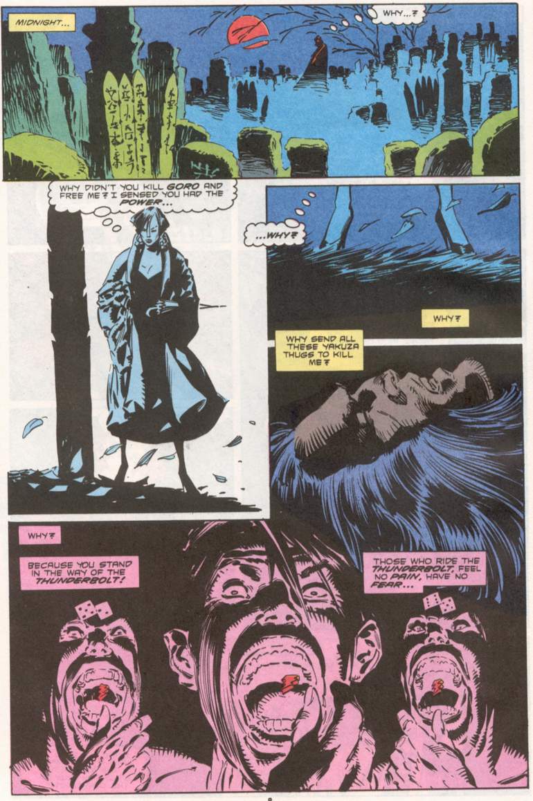 Unfortunately, they're stopped at the airport by Dai Kumo, who controls the police, and who takes possession of Wolverine's coffin. Since Logan was a worthy foe, Dia Kumo has him buried on his family burial grounds. Later, Reiko is hanging around the cemetary, depressed that Wolverine didn't kill Goro and set her free. What follows is a fine a 5-page sequence as any other in comics, and again, Glynis Oliver's colors takes the whole thing to the next level… though Silvestri's pencils aren't bad either. But what about the master, Larry Hama?! You know what, the entire creative team kicked ass here. Check it out: