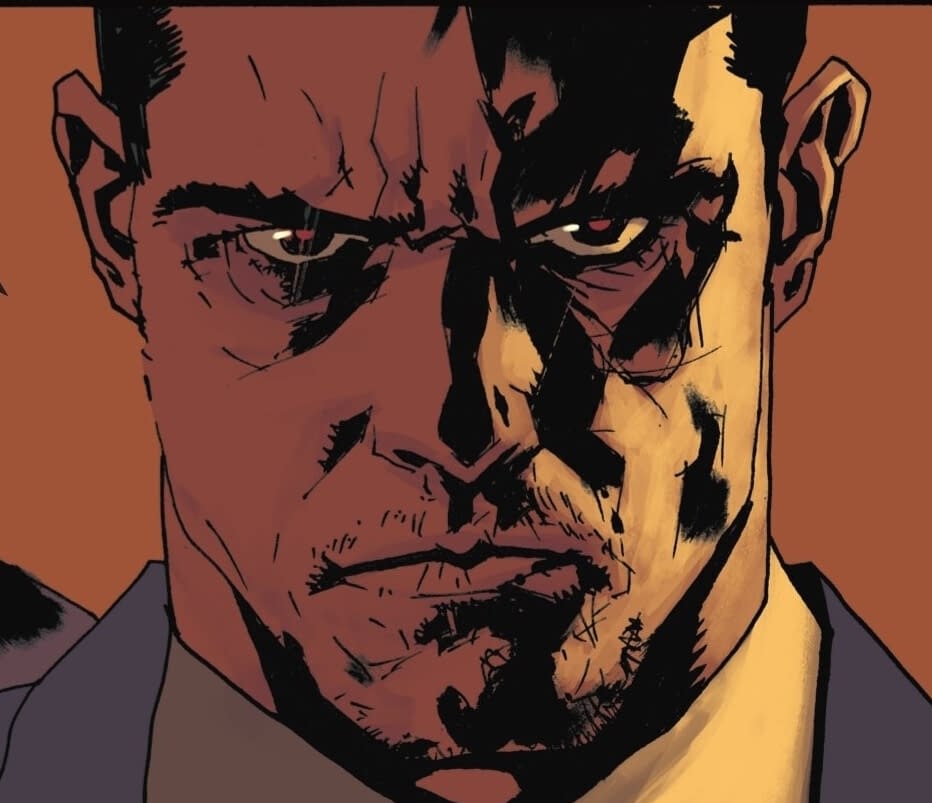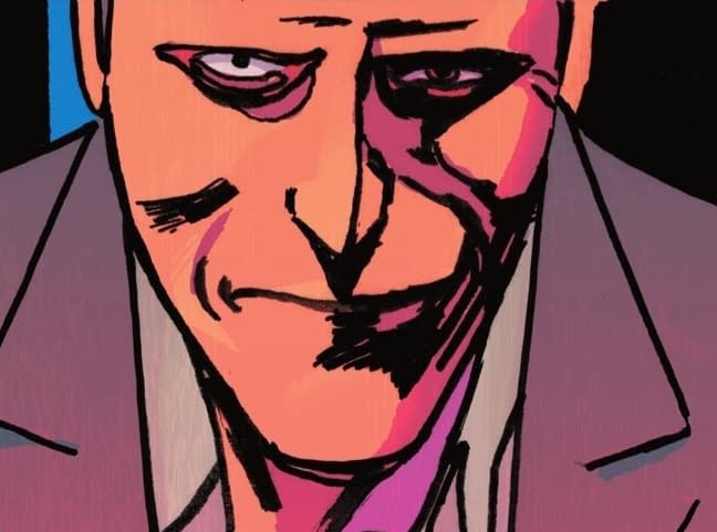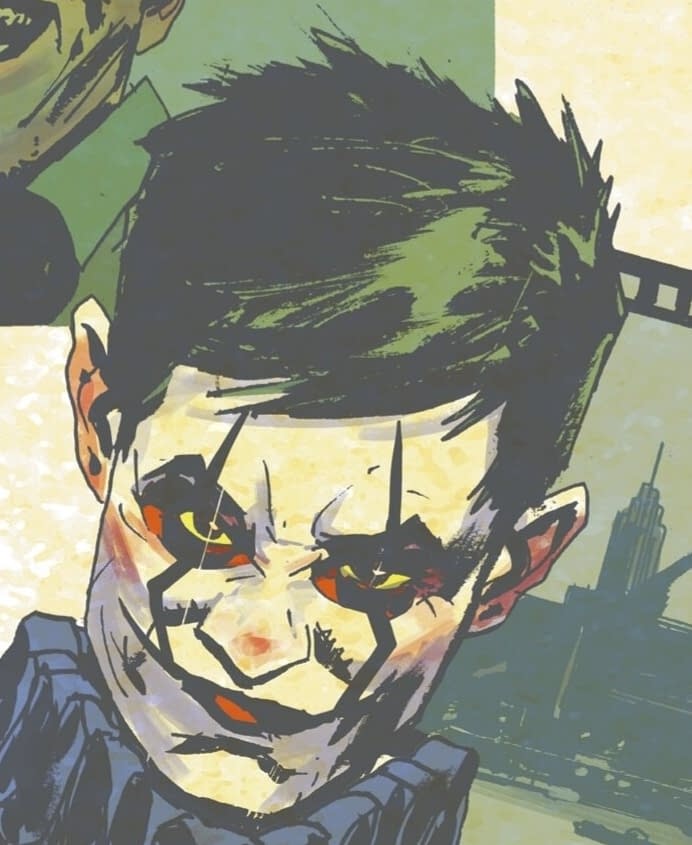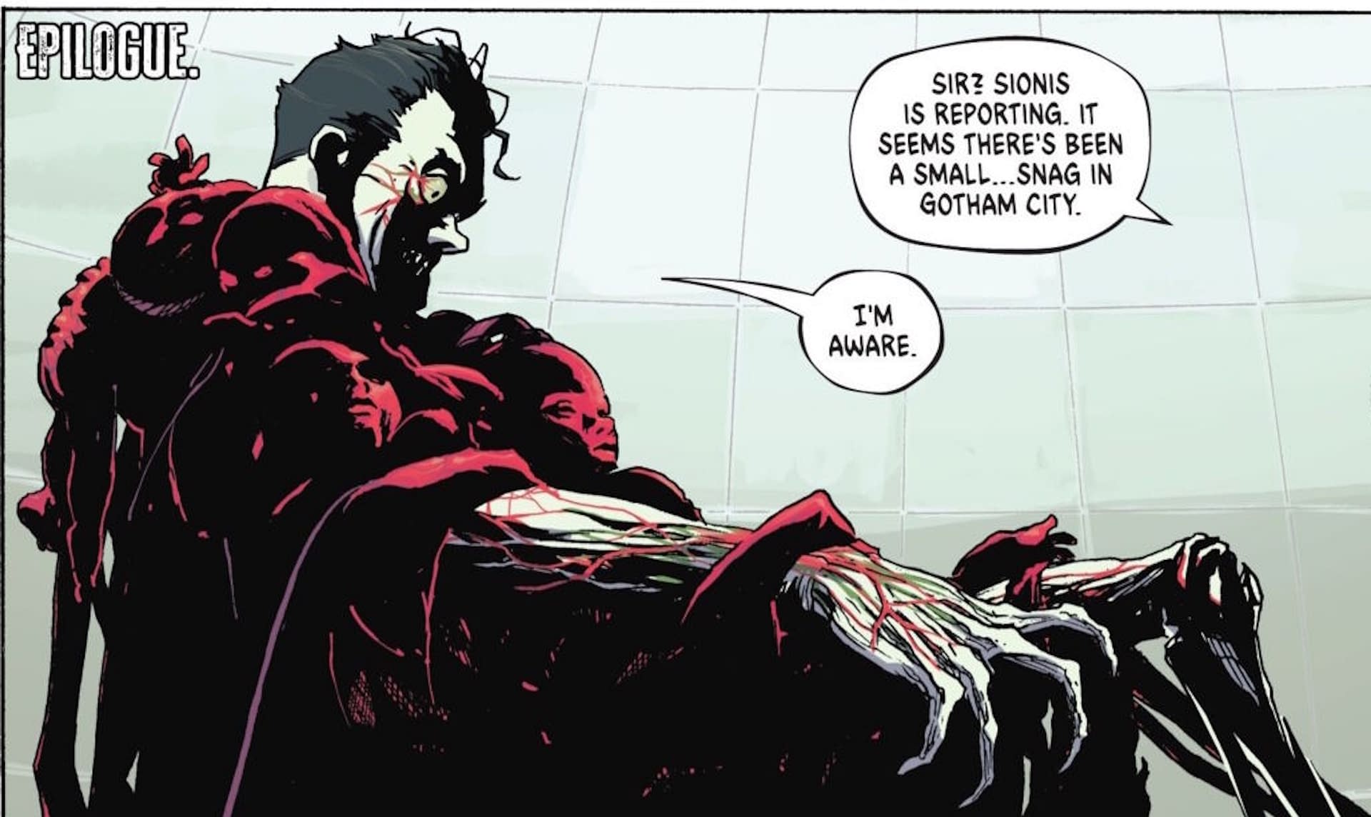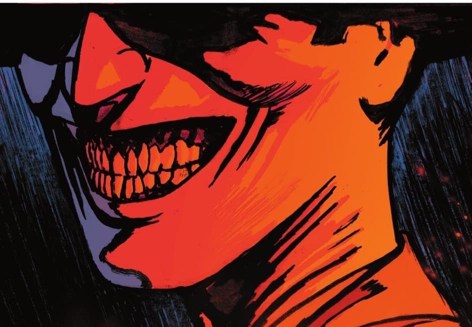 It was one of the most gross and stand out images of Absolute Batman by Scott Snyder and Nick Dragotta, with Jack Grimm, the Absolute Joker, the richest man in the world, and owner of the Arks, gaining some kind of new life, new longevity and new powers, courtesy of… well…