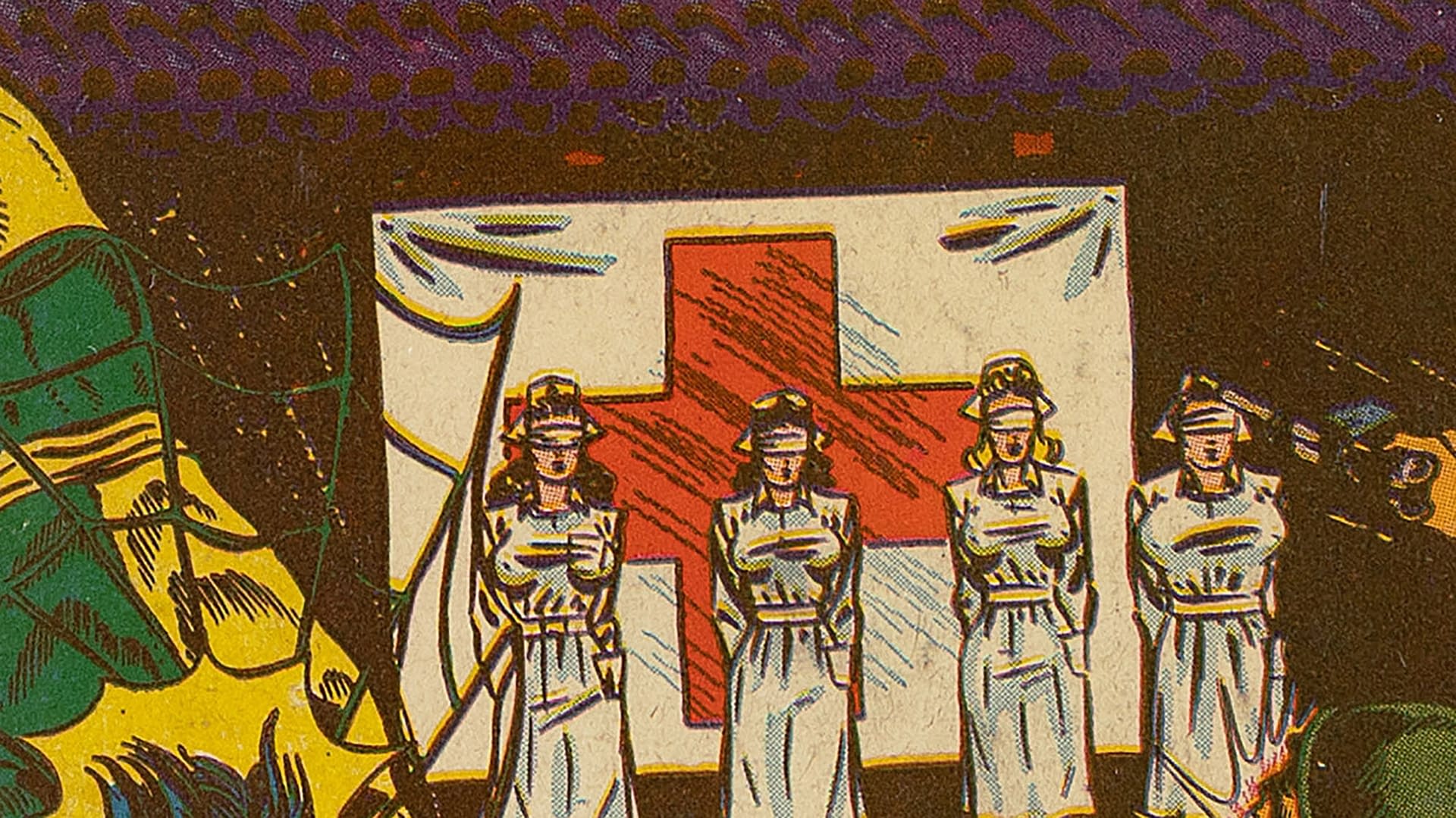 MLJ mainstay Harry Shorten's Zip Comics #33 cover depicts the U.S. Army nurses who became known as the Angels of Battaan.