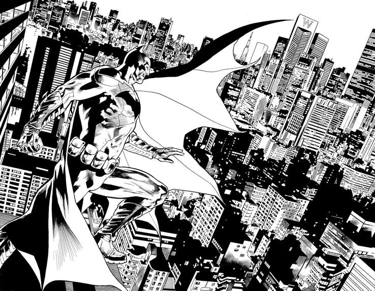 My very first work at DC was two issues of Legends of the Dark Knight, so it's been twenty-five years since I did a full-length story with the Batman. I've decided to revisit the crime scene where my career in American comics began, and I'm so grateful that my old comrade Bryan Hitch is doing this midnight run with me. It's been too many years since we last did a long campaign together.