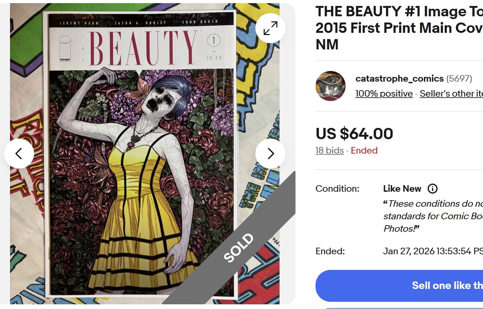 The Beauty #1 Jeremy Haun and Jason A. Hurley sells for $64 raw on eBay after the TV adapgtation hitts the Hulu top spot