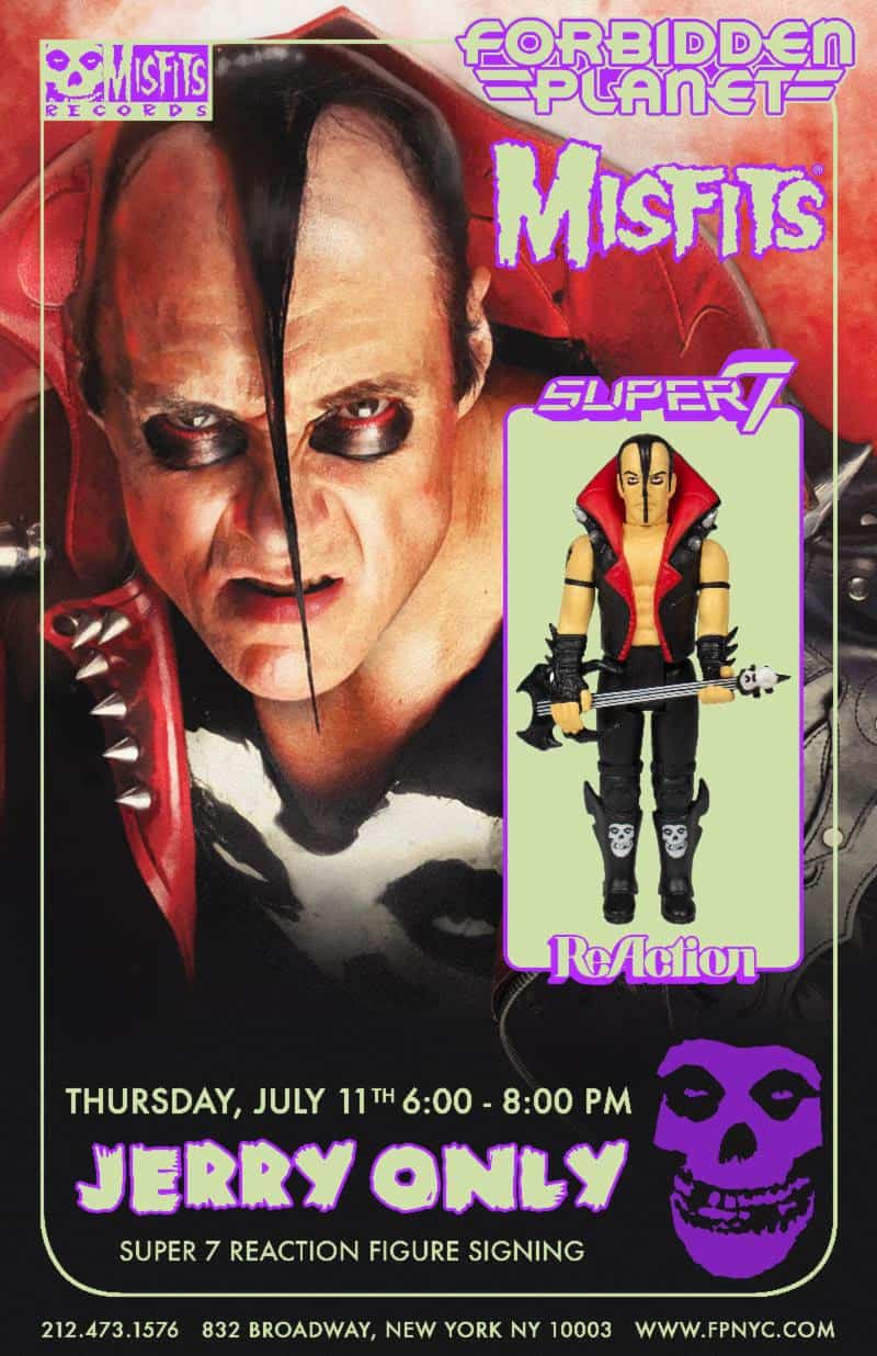 - Jerry Only, original member of the Misfits band at Forbidden Planet New York, to sign his own Misfits Super 7 Re-Action figure. 6-8pm.