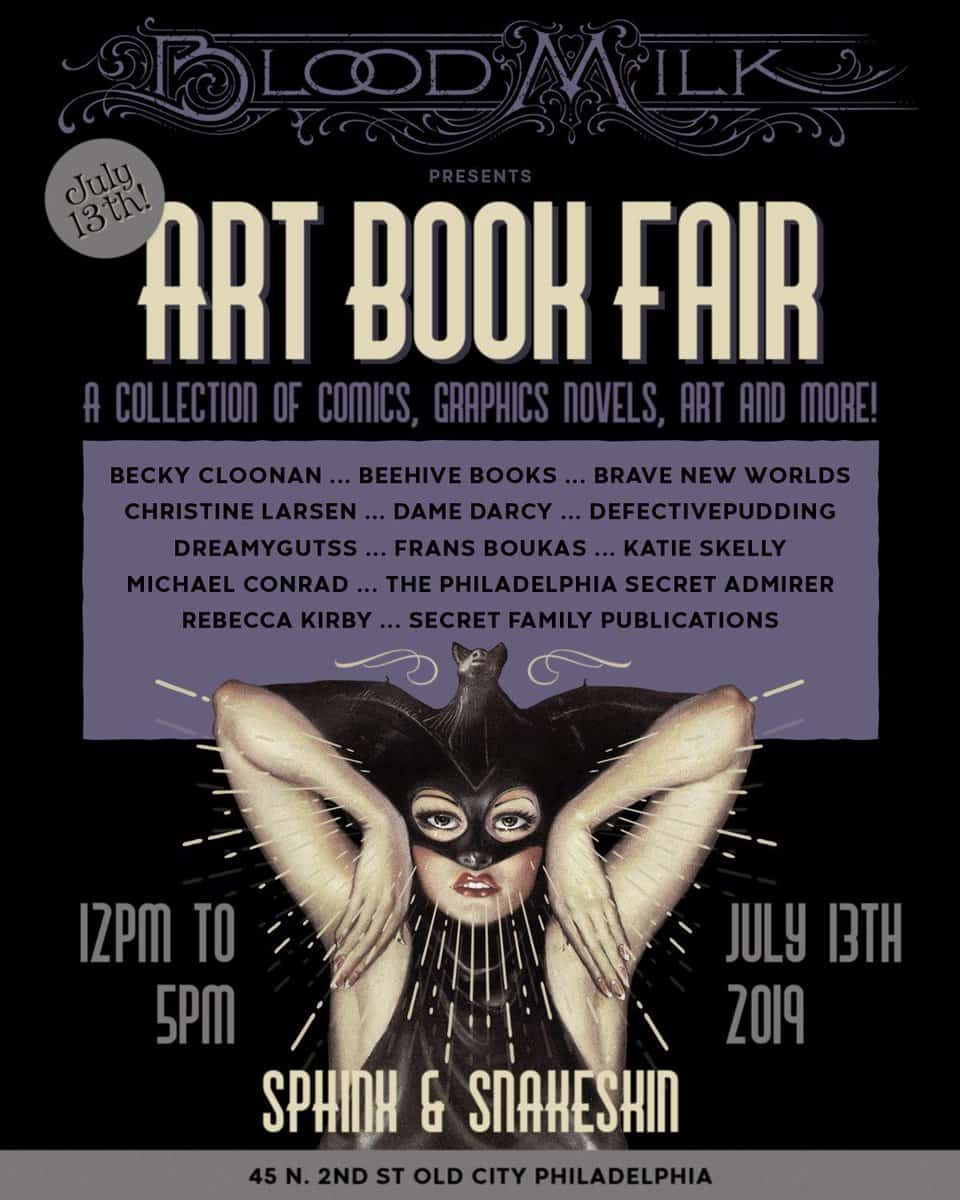 - BloodMilk's ART BOOK FAIR with Becky Cloonan, Sphinx and Snakeskin, Philadelphia, Pennsylvania, noon-5pm.