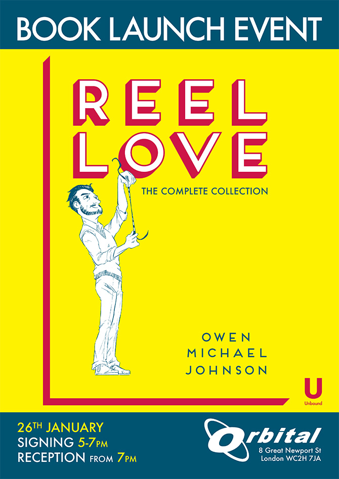 - Owen Michael Johnson launches his debut graphic novel, Reel Love: The Complete Collection. Orbital Comics, London 5-7pm. Reception follows.
