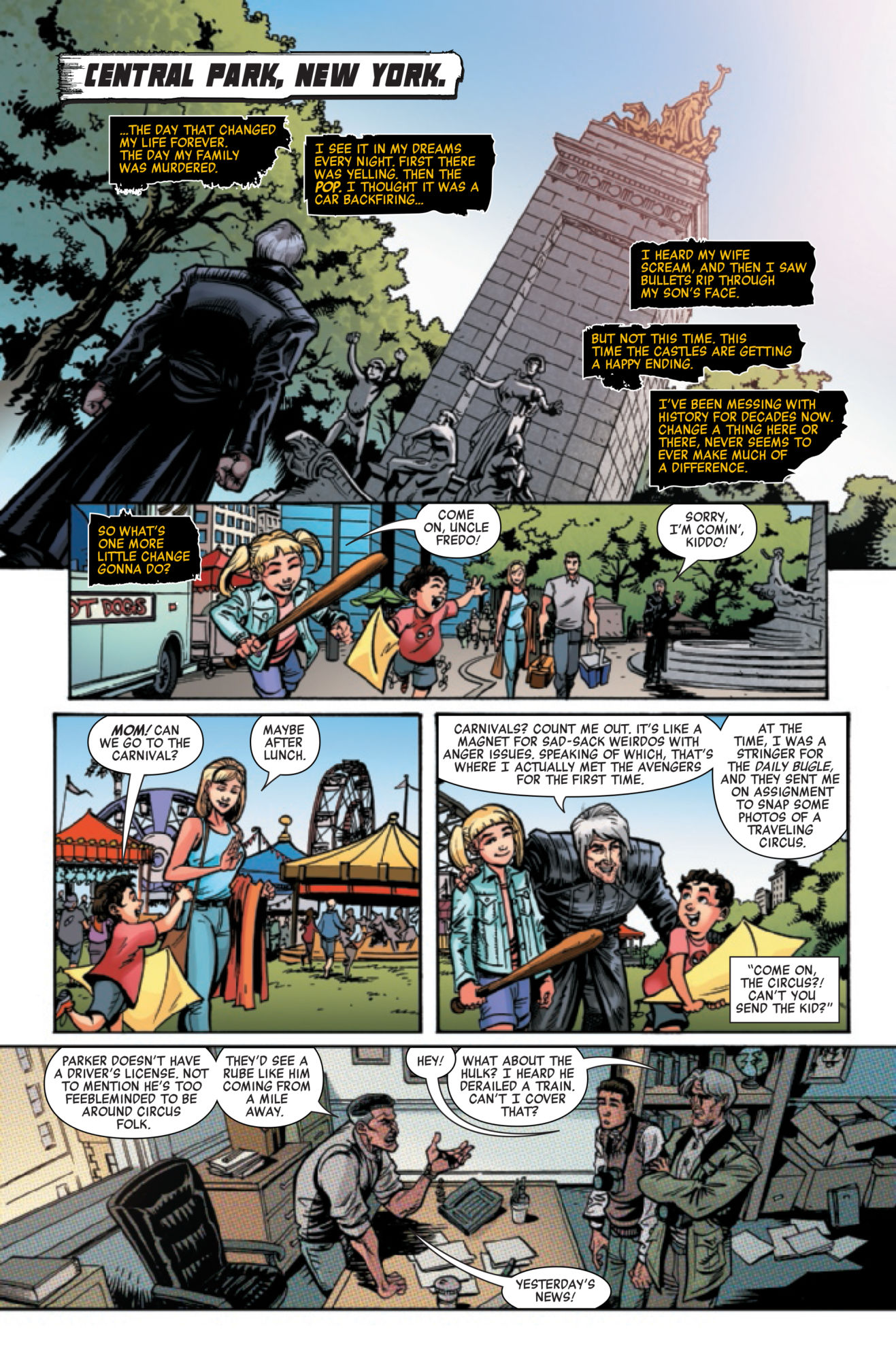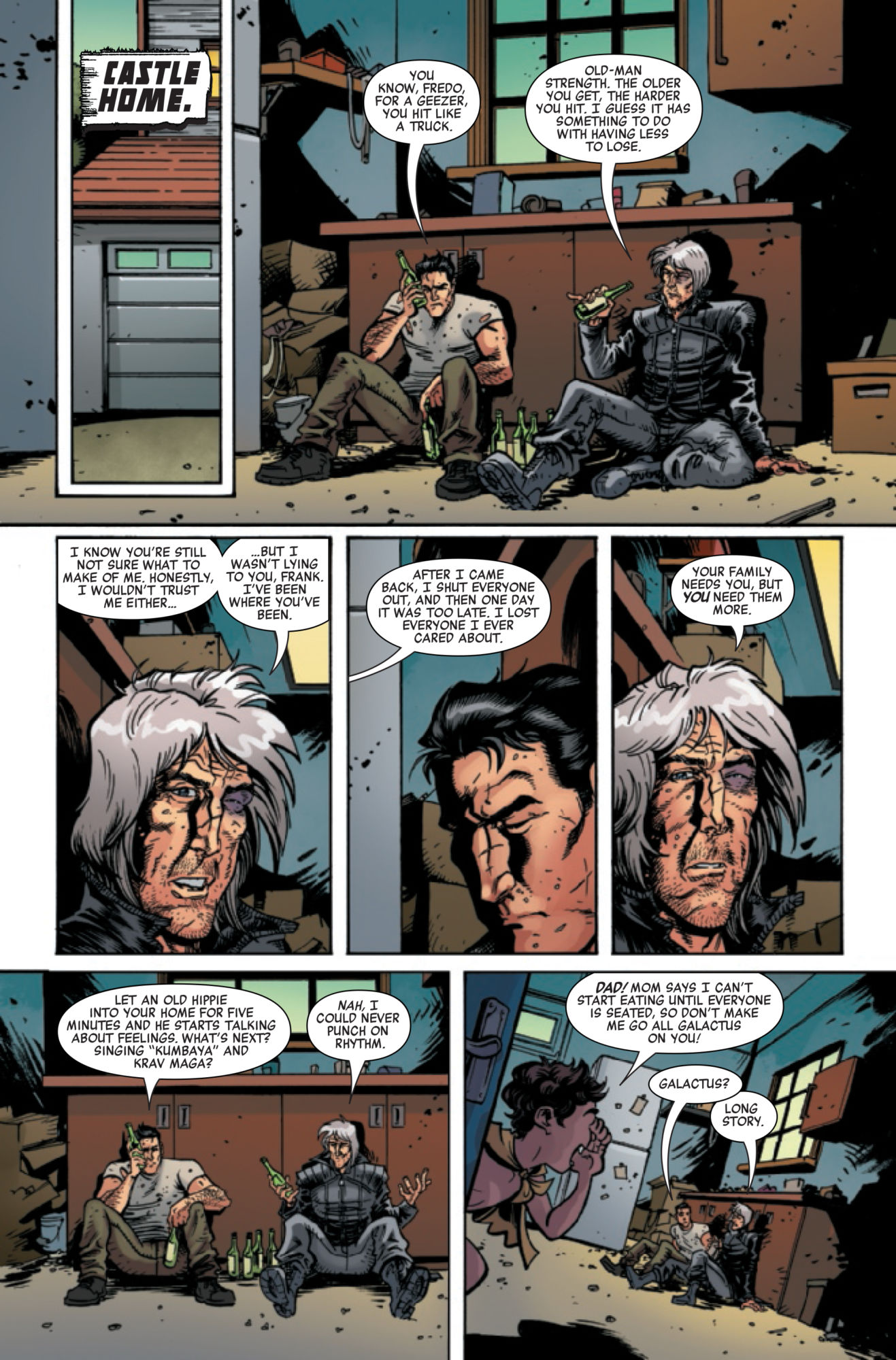 A lot of things could be said about Frank Castle, The Punisher, and probably even more about his older, cosmic self, the Cosmic Ghost Rider. But in this preview of Cosmic Ghost Rider Destroys Marvel History #5, the trigger-happy Frank Castle is called something he's surely never been called before, by none other than… Frank Castle? It would be less confusing to just read the panels…