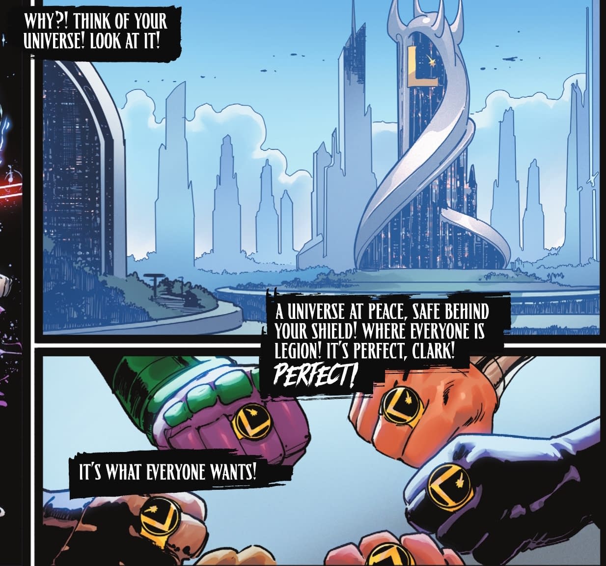 But maybe perfection isn't what Superman wants. And in his absence, the Absolute Legion who turned against Darkseid after being freed of his influence by Lois Lane, have gone back to that rather desolate future that they left…