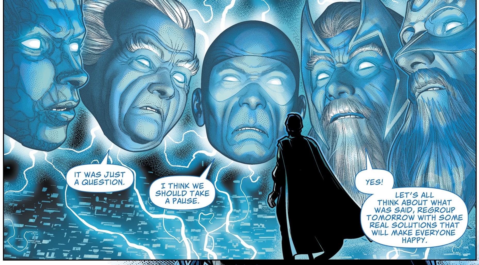 This secret cabal joining the secret cabal beneath Metropolis. The cabal of detectives in Event Leviathan. The cabal that were the Illuminati for Marvel. And the… Cabal. Bendis does like a cabal, he really does…