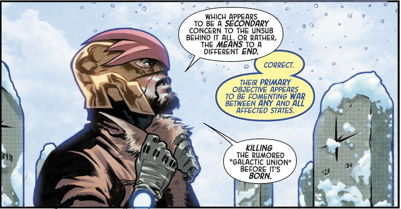 And a motivation to kill an emerging Galactic Union. Just as Marvel Comics pushes "Long Live The Union" for next year's cosmic titles, with Nova, Planet-She Hulk, Exiles, Black Panther Intergalactic and Imperial Guardians. And getting some Kree Intelligence, he makes a discovery.