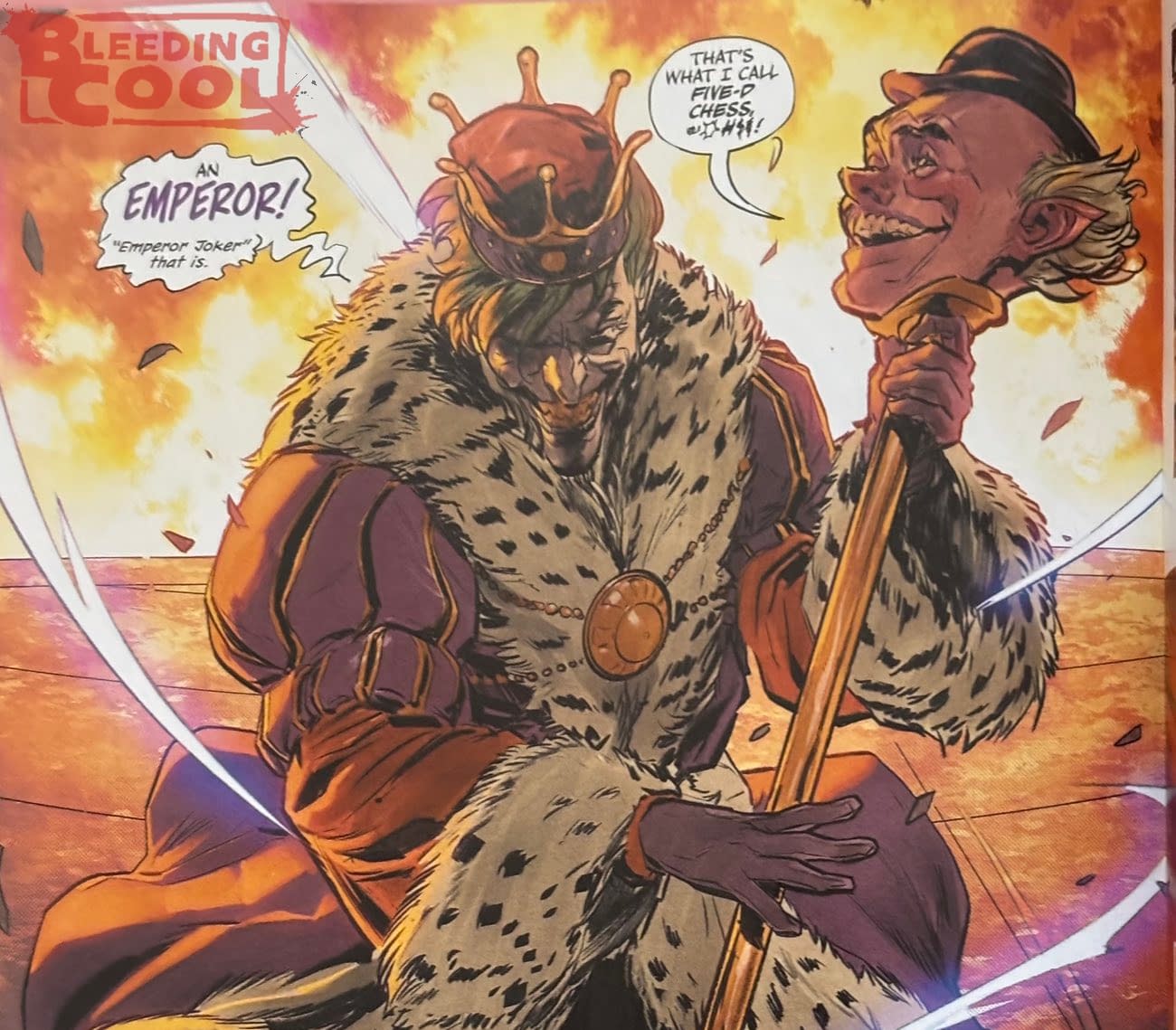 Is that a reference to President Donald Trump being credited with playing five-dimensional chess in his policies? I rather think it might be, as the Emperor Trump nomenclature gets thrown around a lot these days as well, but it really goes back a quarter of a decade. The Emperor Joker storyline span out of the end of the Superman: Arkham storyline in the year 2000 with the Action Comics #769 cliffhanger, then began properly with Emperor Joker #1 and then Superman #161, The Adventures of Superman #583, Superman: The Man of Steel #105 and Action Comics #770. It is possible that some folk might want to buy a few of these on eBay; you never know.