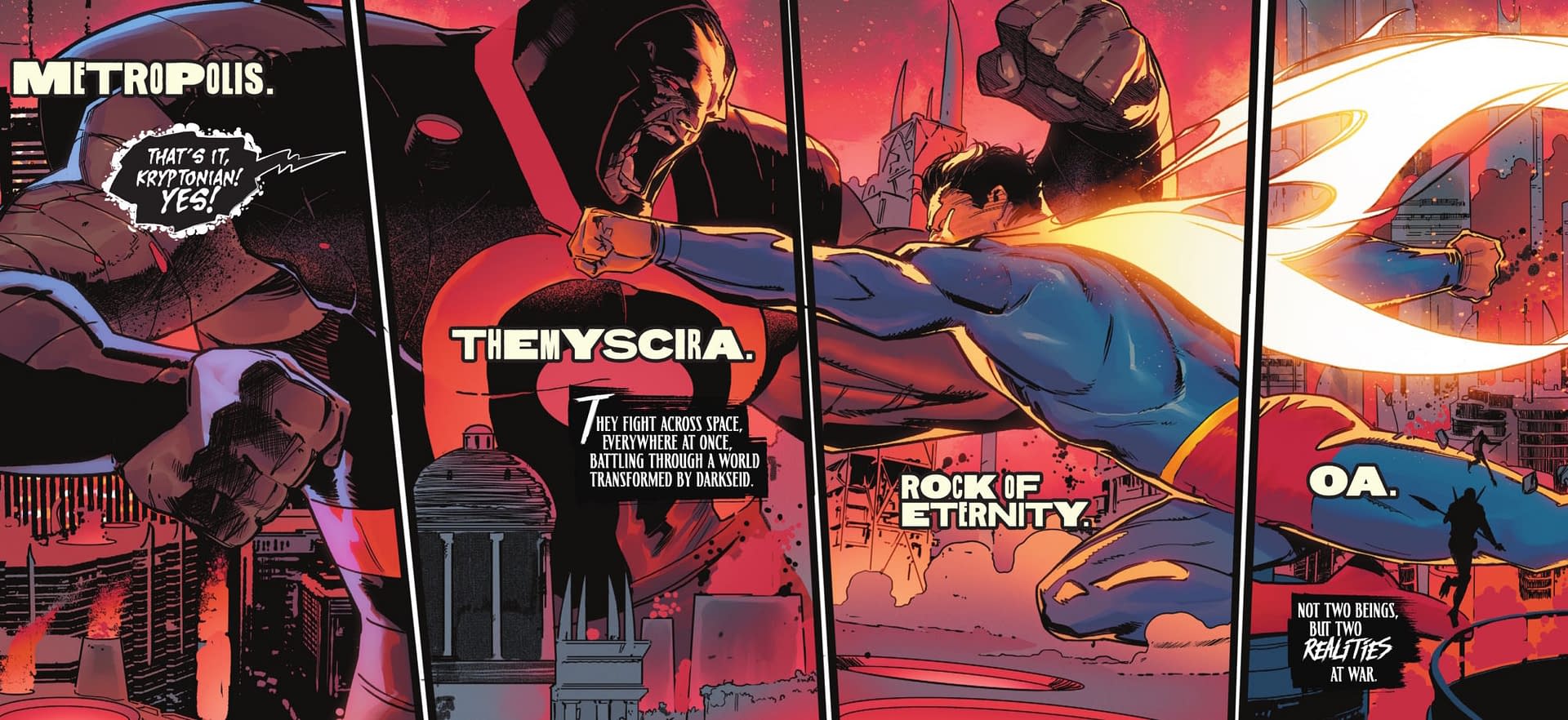 - Darkseid’s multiversal army faces off against Superman across infinite realities and timelines.