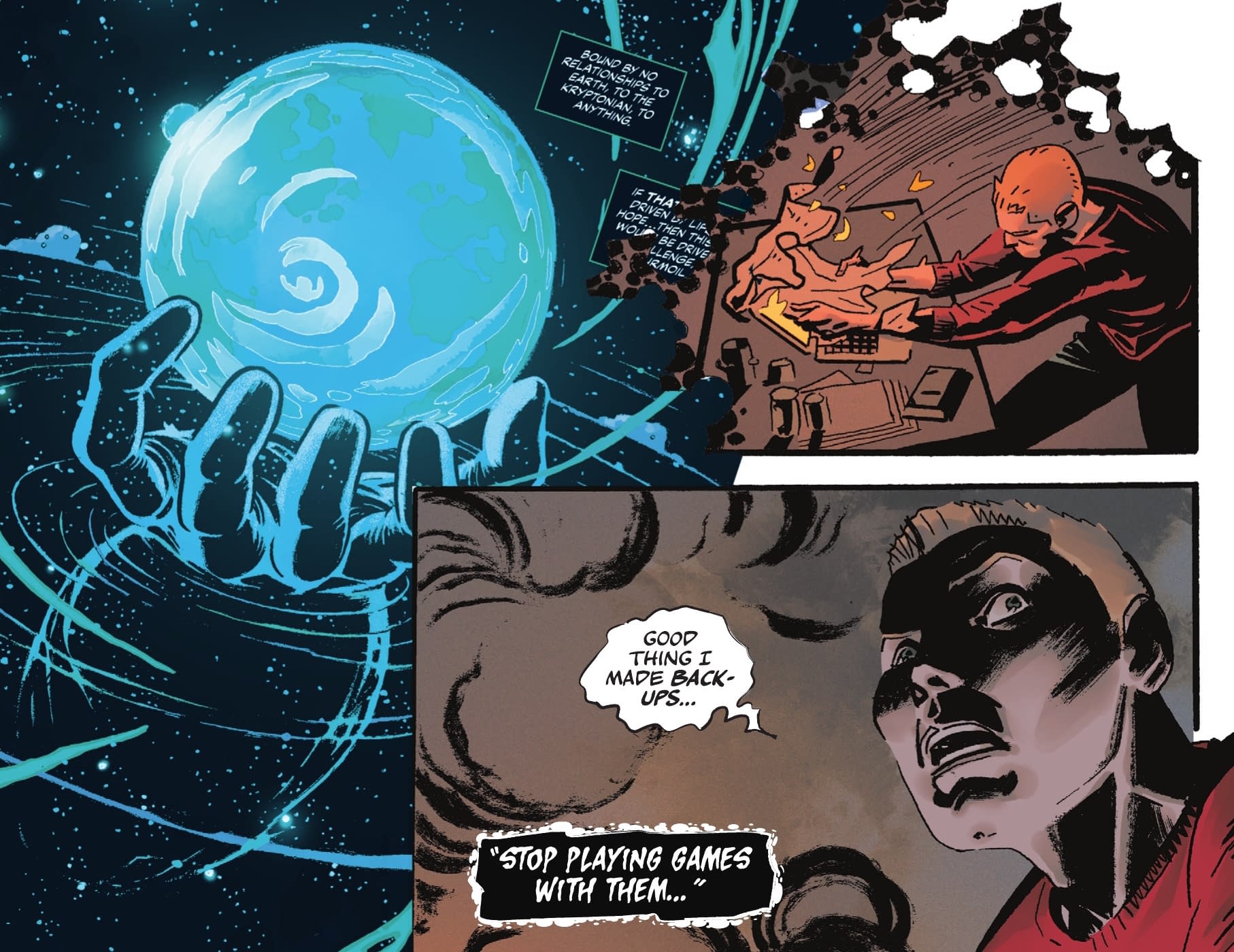 But Doomsday is nore than a hulking figure and has moved on now. Revealing his plan to keep a safe space, or indeed a save space, for Superman and company. Saving rather than killing Superman.