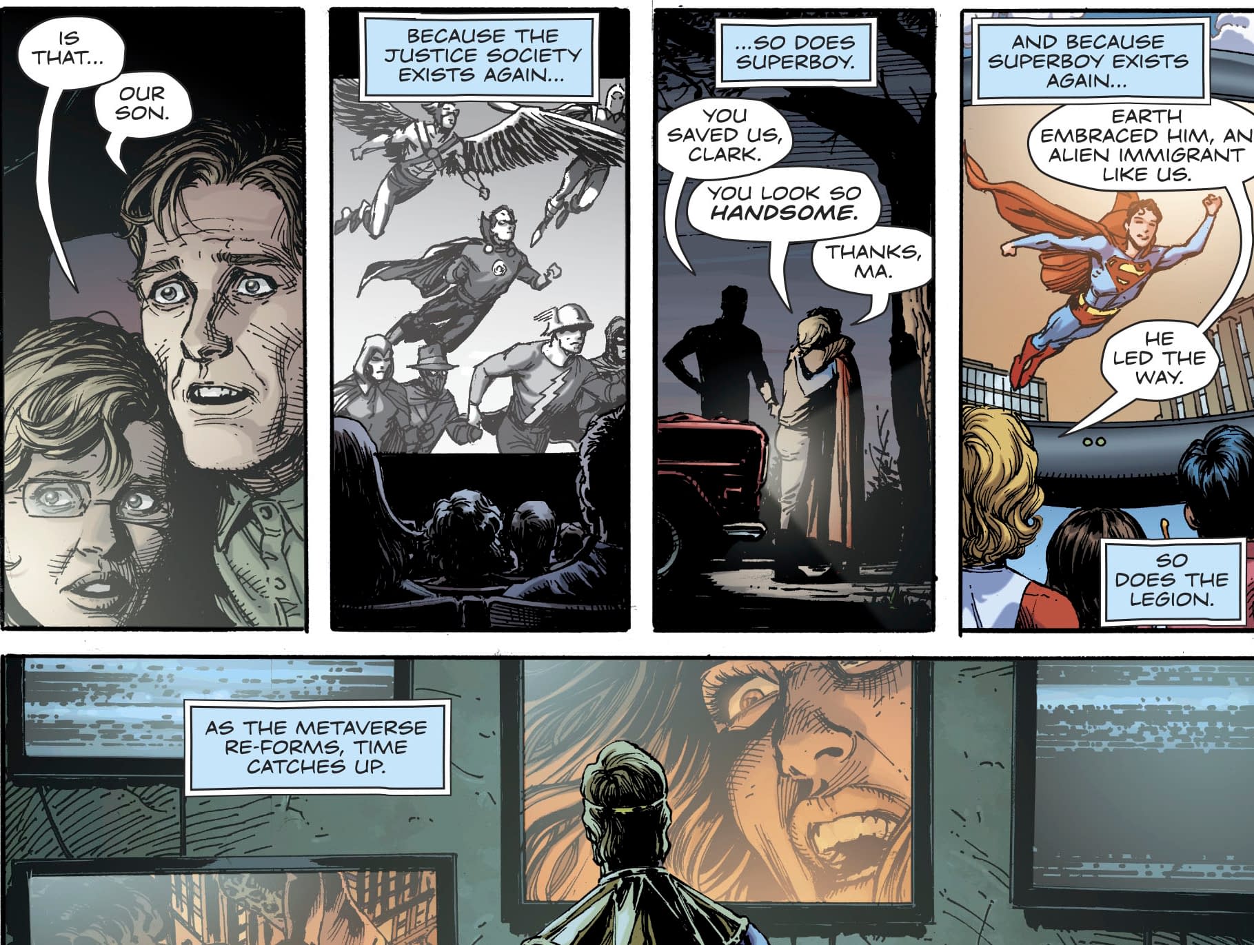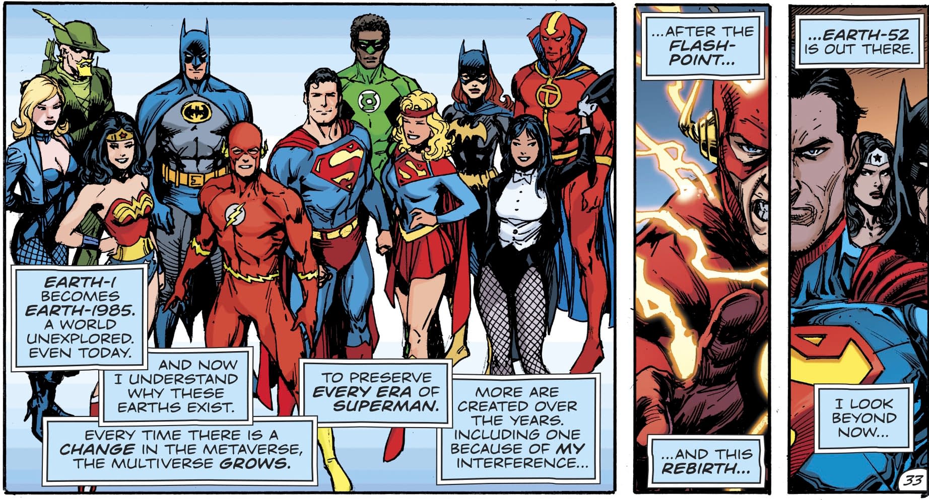 That the Multiverse shaped itself around the Metaverse, creating new realities to preserve every era of Superman, such as the original Earth-Two, Crisis Earth and New 52 Earth.