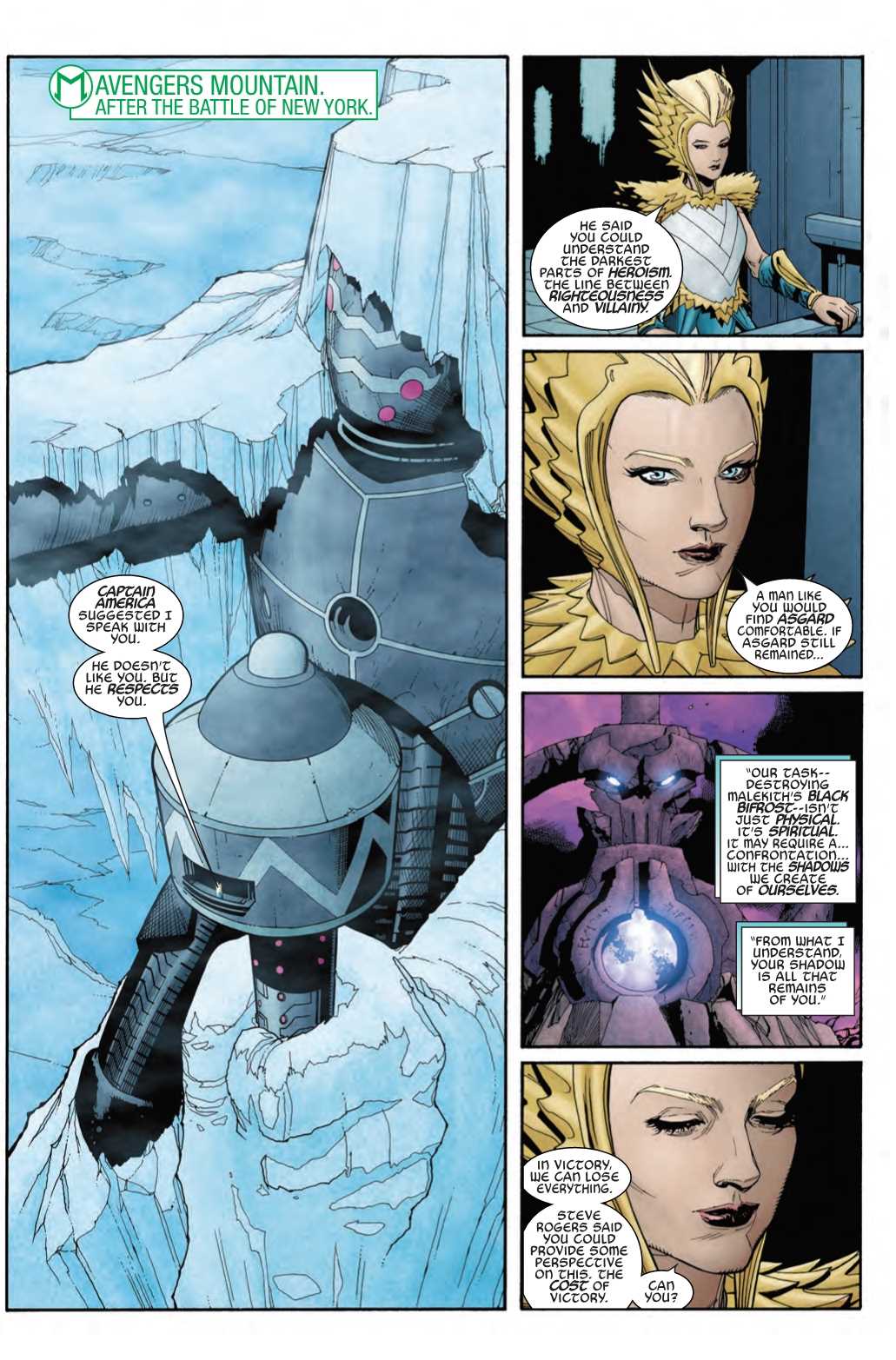 Deep in the swamps of Svartalfheim stands the Black Bifrost, Malekith's corrupted Rainbow Bridge and the only reliable means of travel between the realms with the true Bifrost in pieces. If the gods are going to stop Malekith's invasion, the Black Bridge must fall. With her son missing and husband injured, Lady Freyja must take up the challenge herself. But she won't go alone. Hulk (Jen Walters), the Punisher, Blade and Ghost Rider follow the All-Mother of Asgard straight into Malekith's home territory!